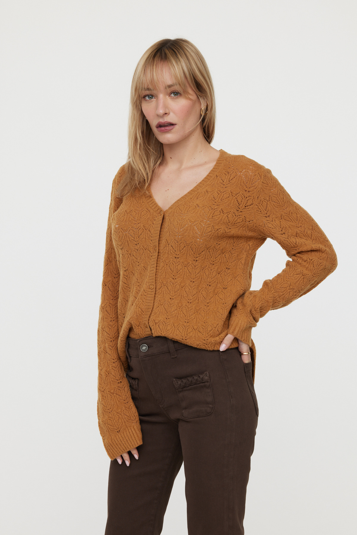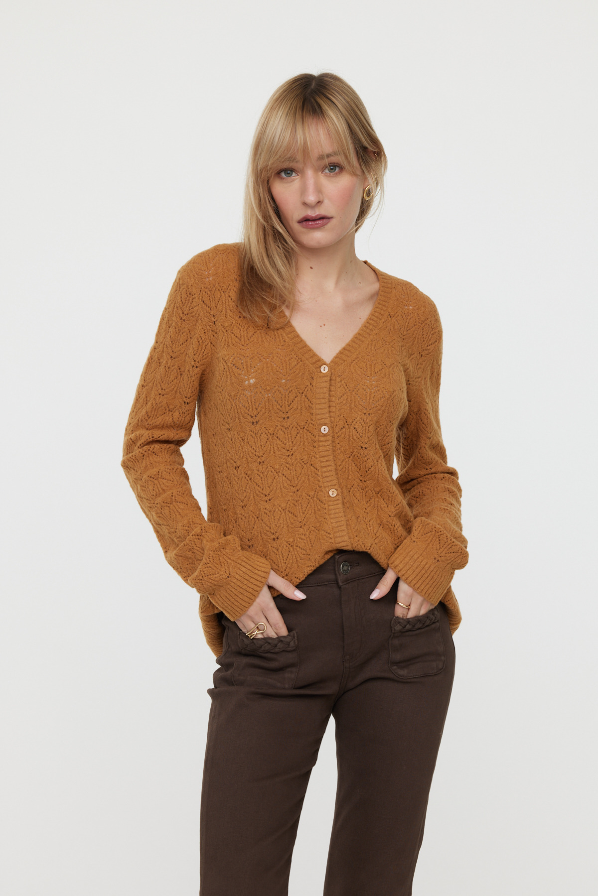 Le Cardigan Clioty Camel est-il adapté aux températures fraîches ? Oui, sa maille fine offre une isolation légère idéale pour les saisons intermédiaires.