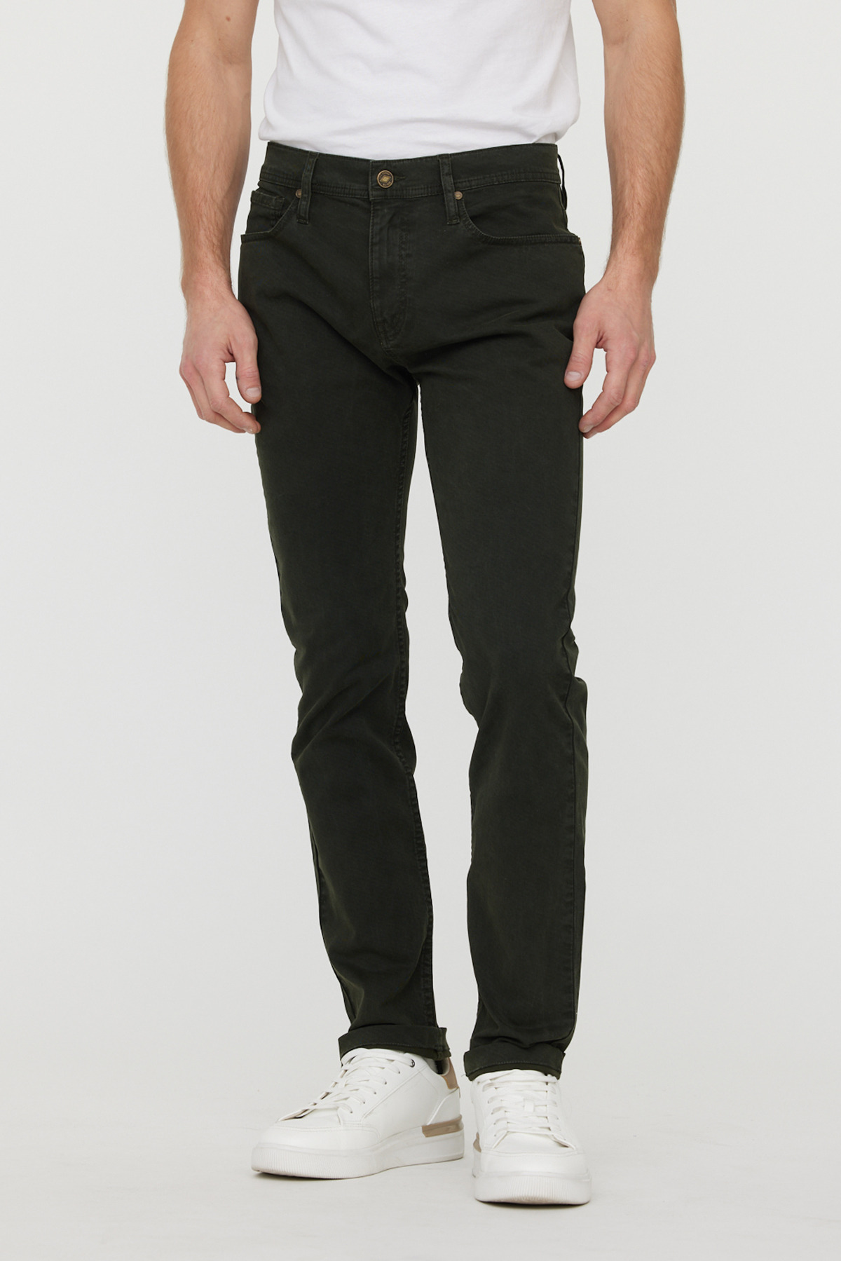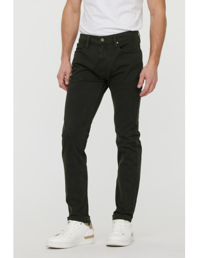 Fabriqué en denim de qualité, ce jean présente une coupe droite avec une taille classique, des poches fonctionnelles et une fermeture zippée. Sa finition kaki olive est soigneusement travaillée pour un rendu durable et tendance.