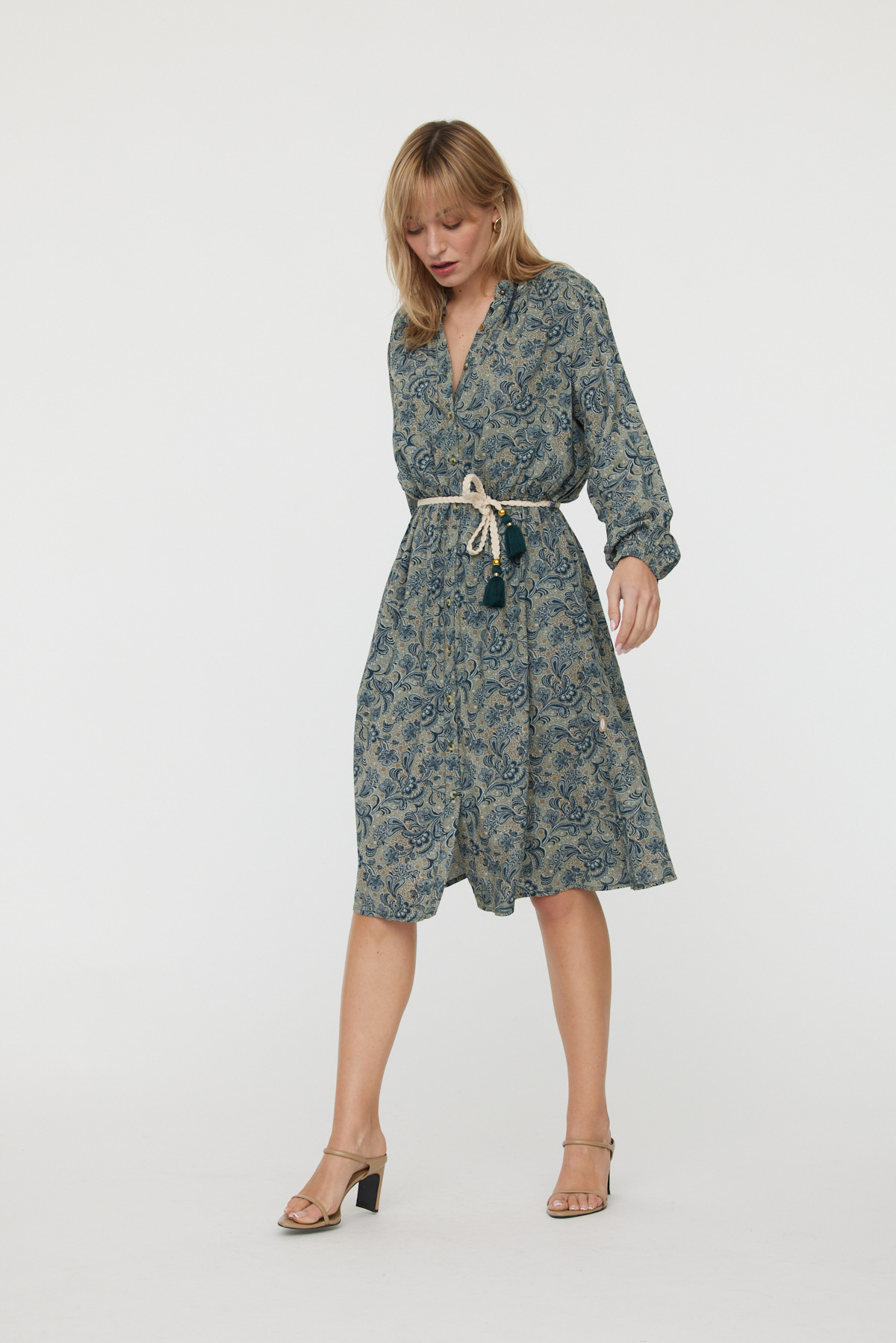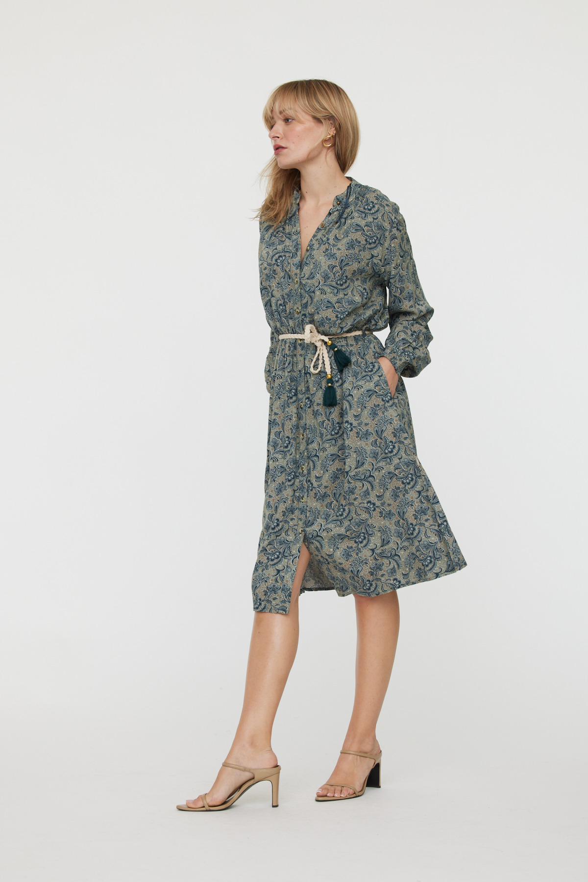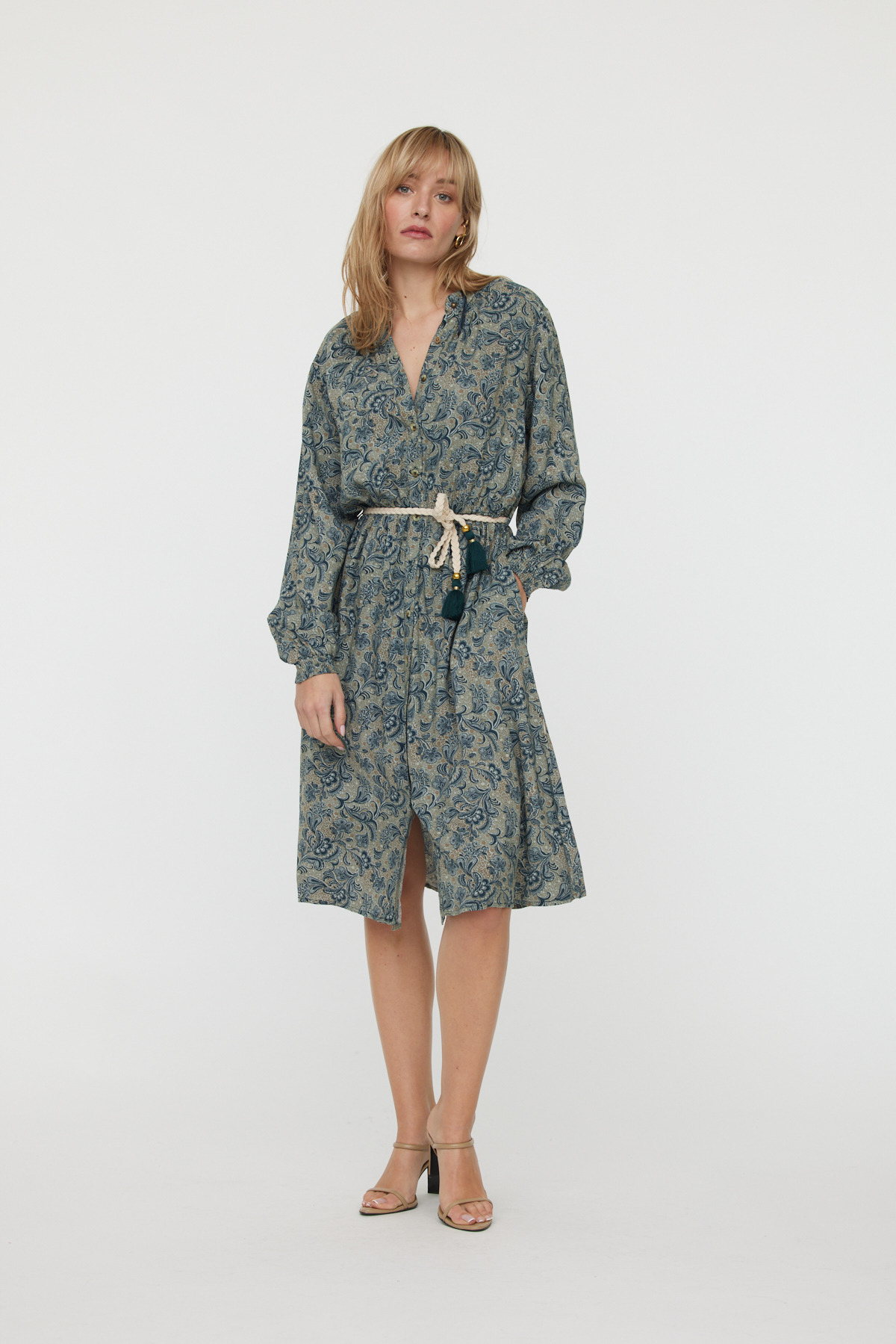 Comment entretenir cette robe ? Elle se lave en machine à 30 degrés pour préserver la couleur et la qualité du tissu.