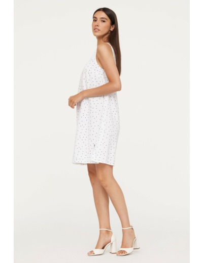 Conçue pour épouser délicatement la silhouette, cette robe allie confort et légèreté grâce à son tissu de qualité. Son blanc immaculé apporte une touche de fraîcheur et de pureté à votre garde-robe, idéale pour les journées ensoleillées ou les soirées décontractées. Facile à accessoiriser, elle se prête aussi bien à un look casual qu’à une tenue plus sophistiquée.
