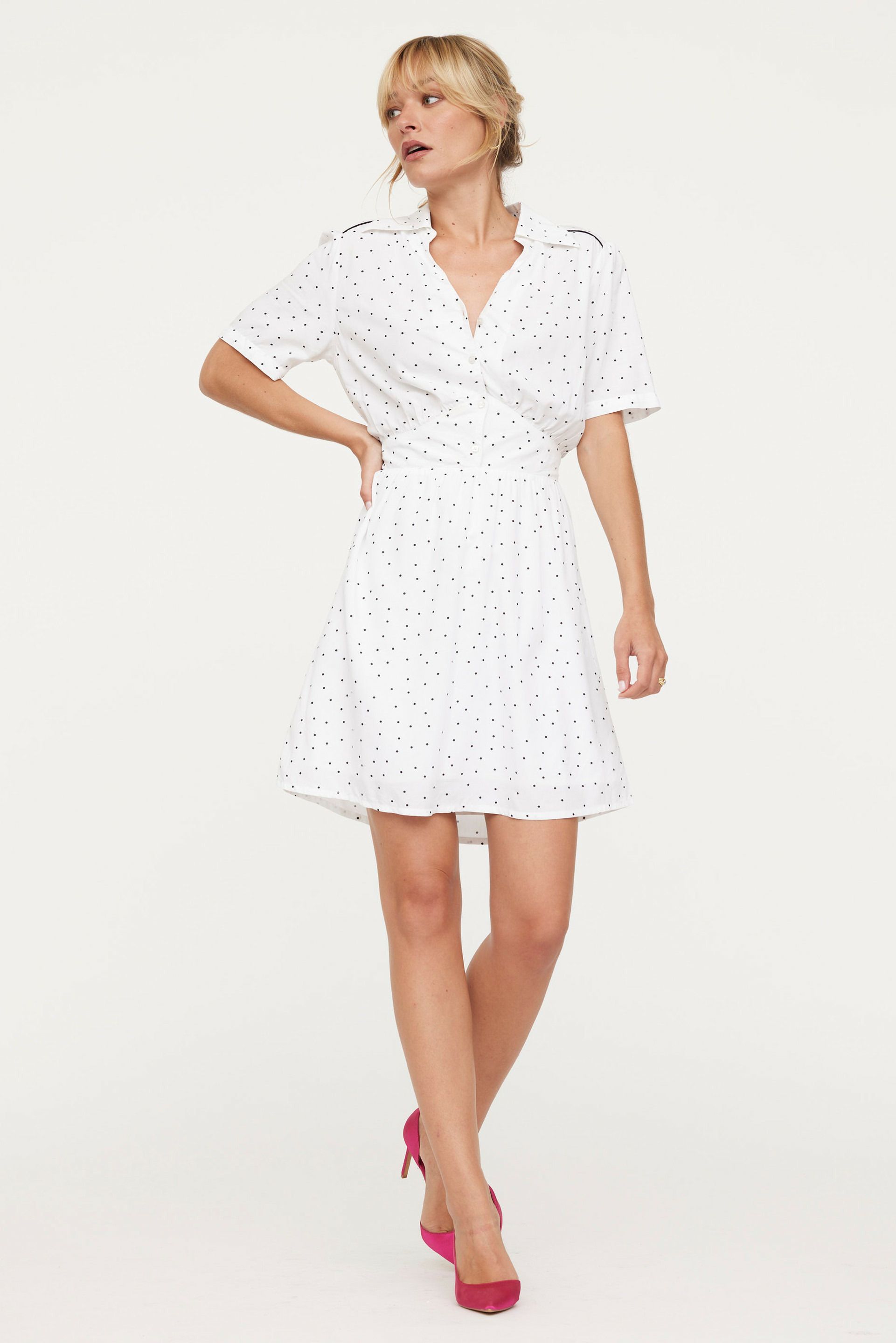 Conçue pour sublimer votre silhouette, cette robe allie confort et modernité grâce à sa coupe fluide et ses finitions soignées. Son blanc éclatant apporte une touche de fraîcheur et de sophistication à votre garde-robe, idéale pour les journées ensoleillées comme pour les soirées décontractées.