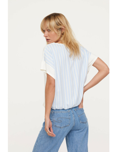 Réponse. Le T-shirt est de couleur ivoire, une teinte claire et lumineuse.
