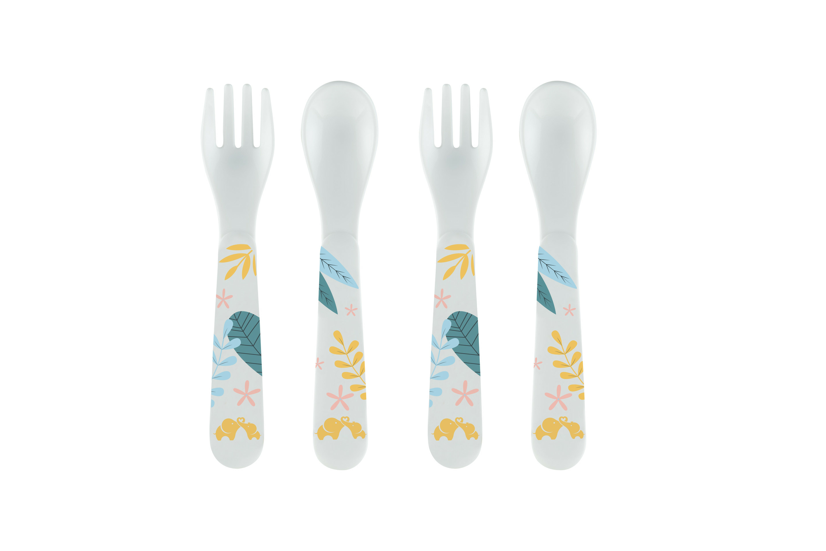 Ce lot de 2 cuillères et 2 fourchettes permet à votre enfant de l'accompagner dans le développement de son autonomie.