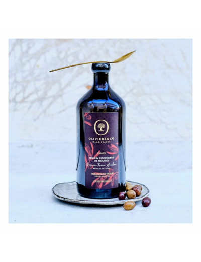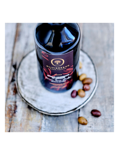 La naissance de cette huile « olives maturées » commence par la récolte manuelle des olives vertes et fraîches. Puis, un processus de maturation spécifique est mis en place, consistant à laisser fermenter les olives dans des conditions contrôlées avant la trituration au moulin.Cette technique de fermentation contrôlée confère à l’huile des arômes dominants de tapenade, de cacao et de sous-bois.