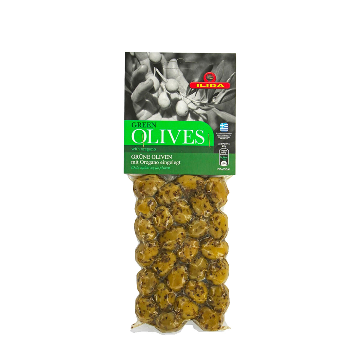 Origine: Produit de Grèce Ingrédients: olives vertes 95%, huile dʼolive, origan0,8%, acide citrique, acide lactique, sel. Conditions particulières de conservation: Produit sous vide, à conserver au frais après ouverture & consommer sous 5 jours
