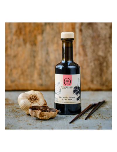 De plus en plus présente dans la cuisine de tous les jours sur tous les continents, la sauce soja s’invite chez Oliviers&Co pour marier huile d’olive et saveurs d’Asie. Pour conférer une saveur unique à cette sauce soja traditionnelle, de l’ail noir a été méticuleusement incorporé. Cette fusion audacieuse révèle des notes sucrées, caramélisées et légèrement acidulées qui ajoute de la complexité à la saveur umami de la sauce soja.Sans gluten et 100% naturelle, cette sauce soja apportera une délicieuse touche asiatique à vos plats.