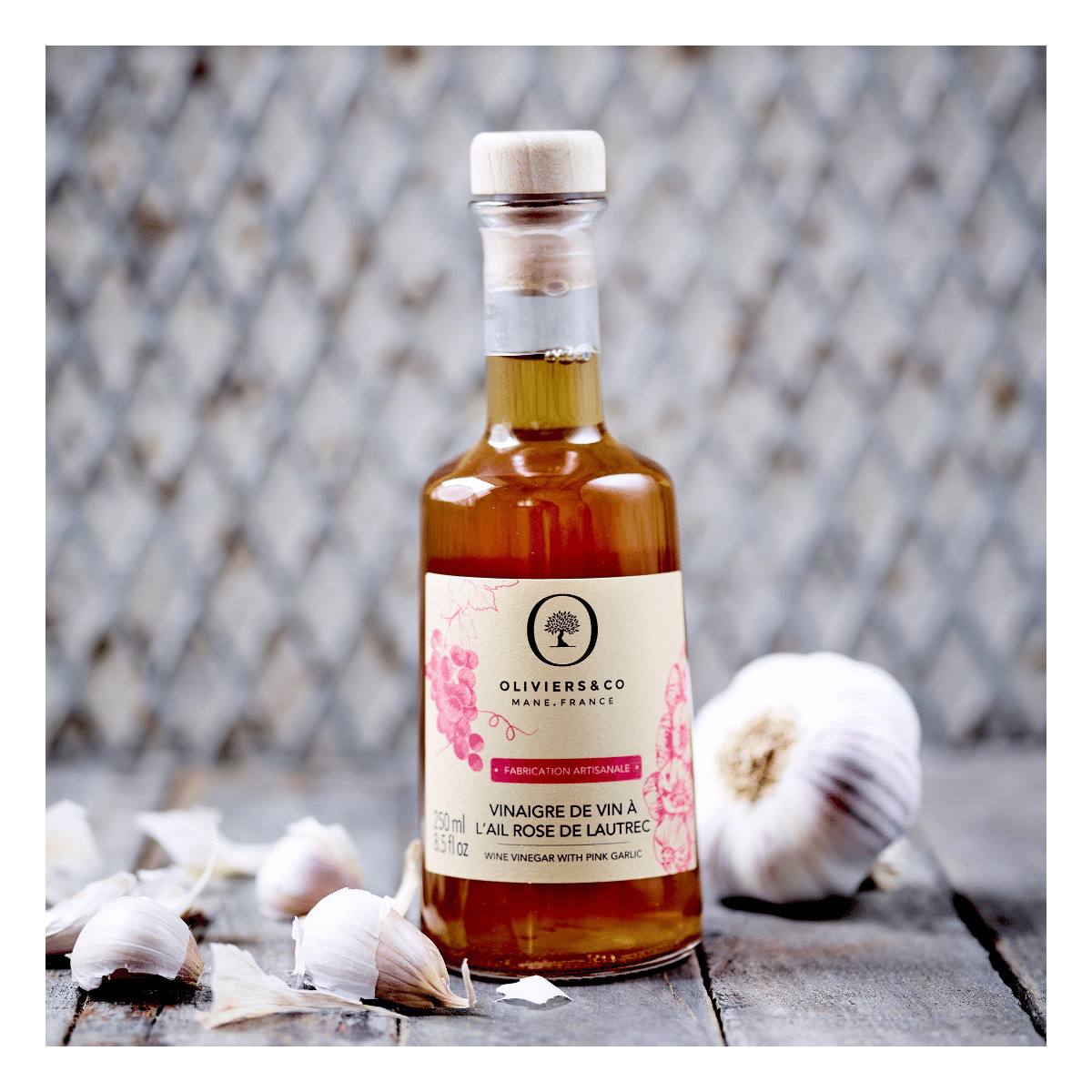 Cette nouvelle création réalisée par notre maitre vinaigrier Frédéric Chaix est préparée avec de l’ail rose frais entier macéré dans du vinaigre de vin blanc.L’ail de Lautrec IGP connu pour sa douceur et son goût subtil associé à l’acidité du vinaigre de vin donne naissance à ce vinaigre aromatique particulièrement goûteux et digeste.Associé à une belle huile d’olive vierge extra ou une huile aromatique au basilic ou au thym, ce vinaigre artisanal et savoureux séduira petits et grands chefs pour relever tous les plats à cru ou en cuisson.