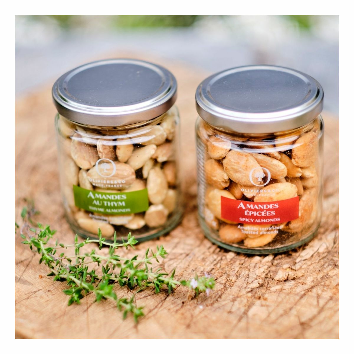 Dorées et croquantes, nos amandes au thym sont un véritable hommage aux saveurs méditerranéennes. Parfumées avec du thym délicat, elles offrent une touche aromatique subtile qui rappelle les collines
