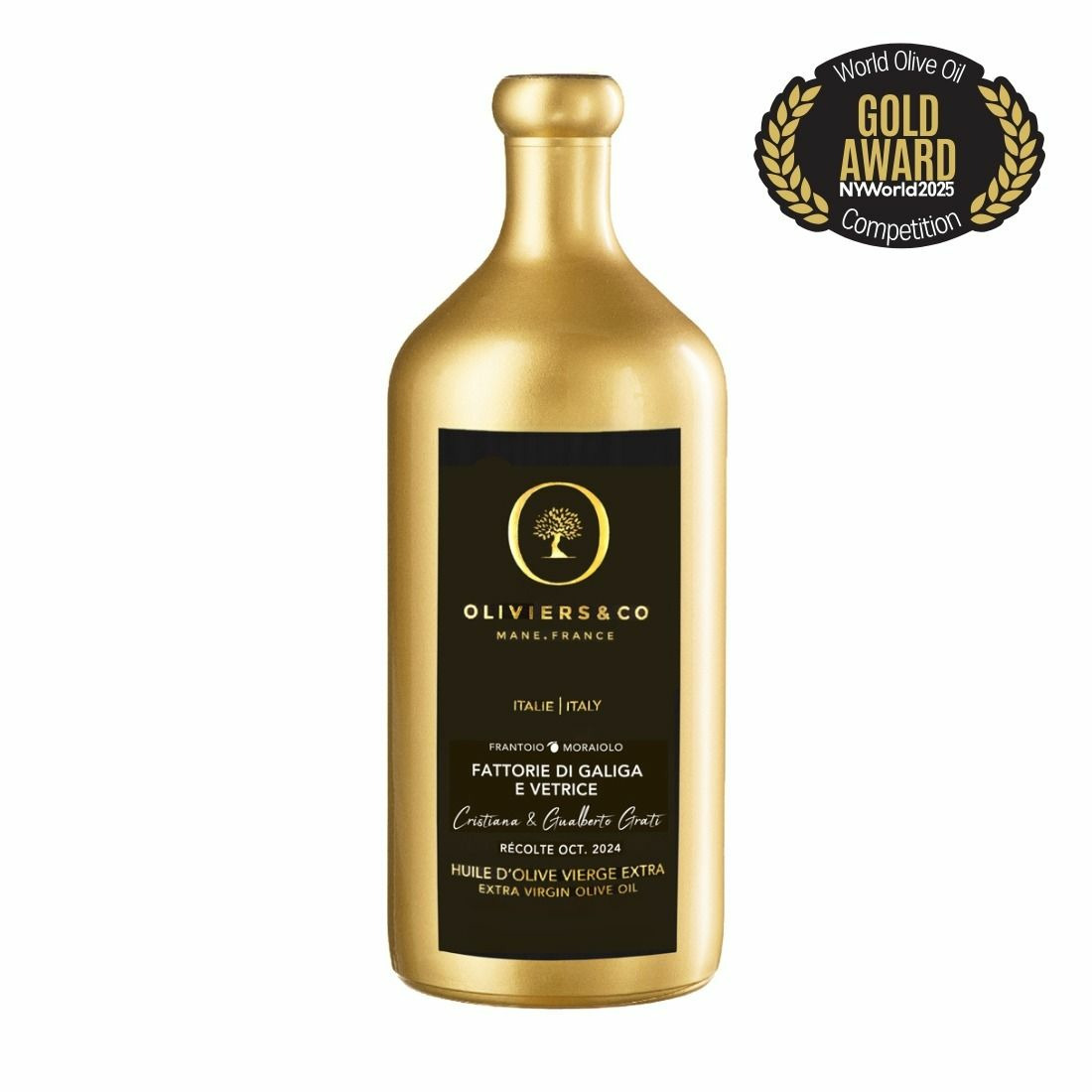 Origine: ItalieIngrédients : olives: Frantoio 90%, Pendolino 5%, Moraiolo 5%,Conditions particulières de conservation : A conserver à l'abri de la chaleur et de la lumière