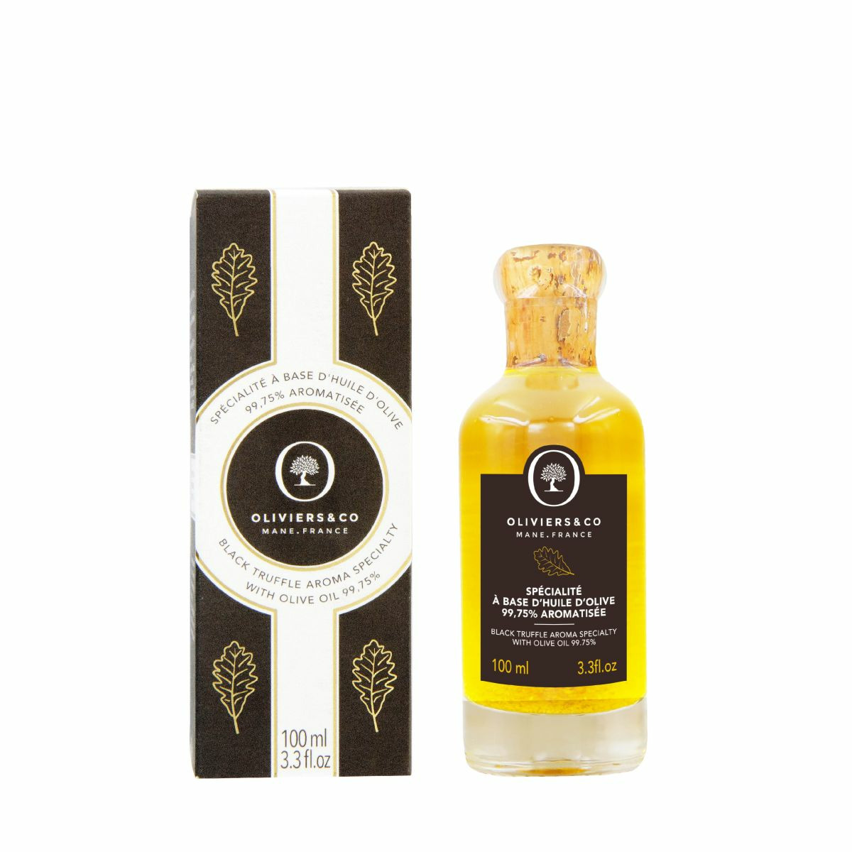 Ingrédients : Huile d'olive vierge extra 99,75%, arôme de truffe noire 0,25 %, Conditions particulières de conservation : A conserver à l'abri de la chaleur et de la lumière