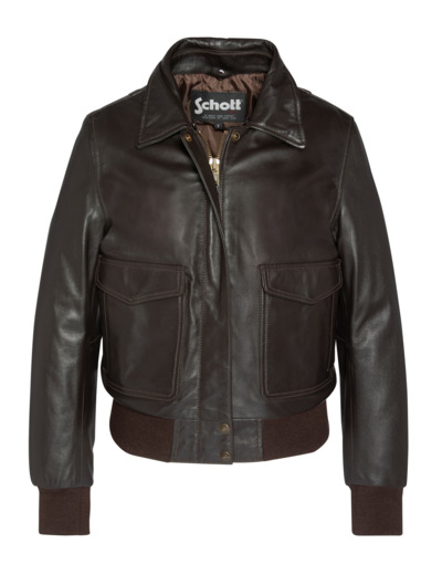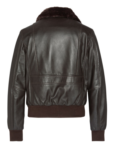 Blouson aviateur avec col en fausse fourrure amovible, cuir d'agneau