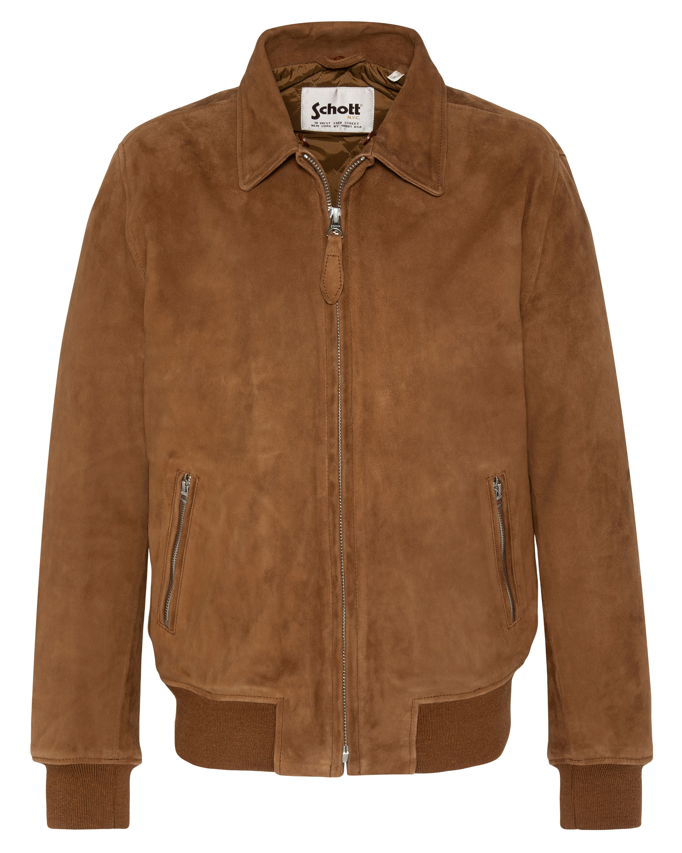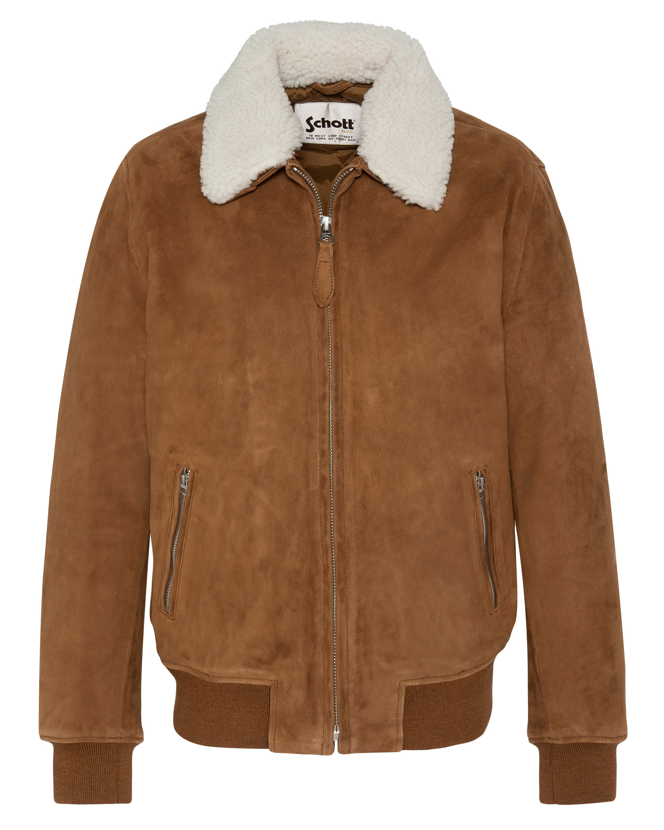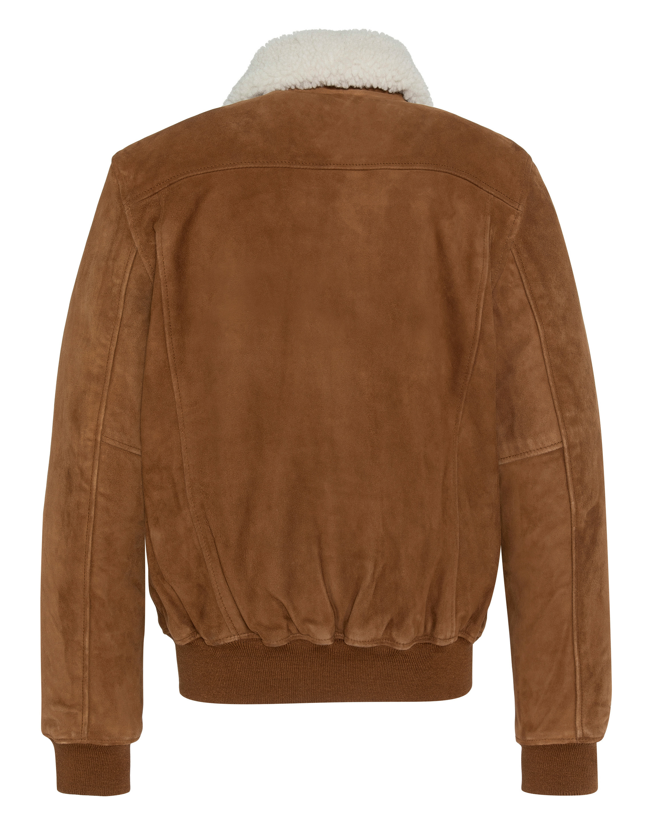 Blouson casual rouille avec col mouton amovible, chèvre velours
