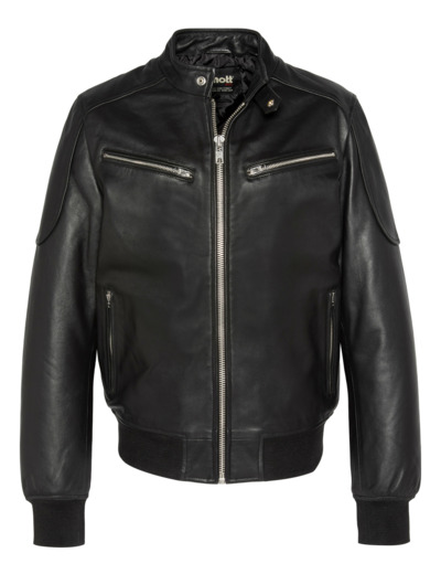 Blouson motard multipoches, cuir d'agneau