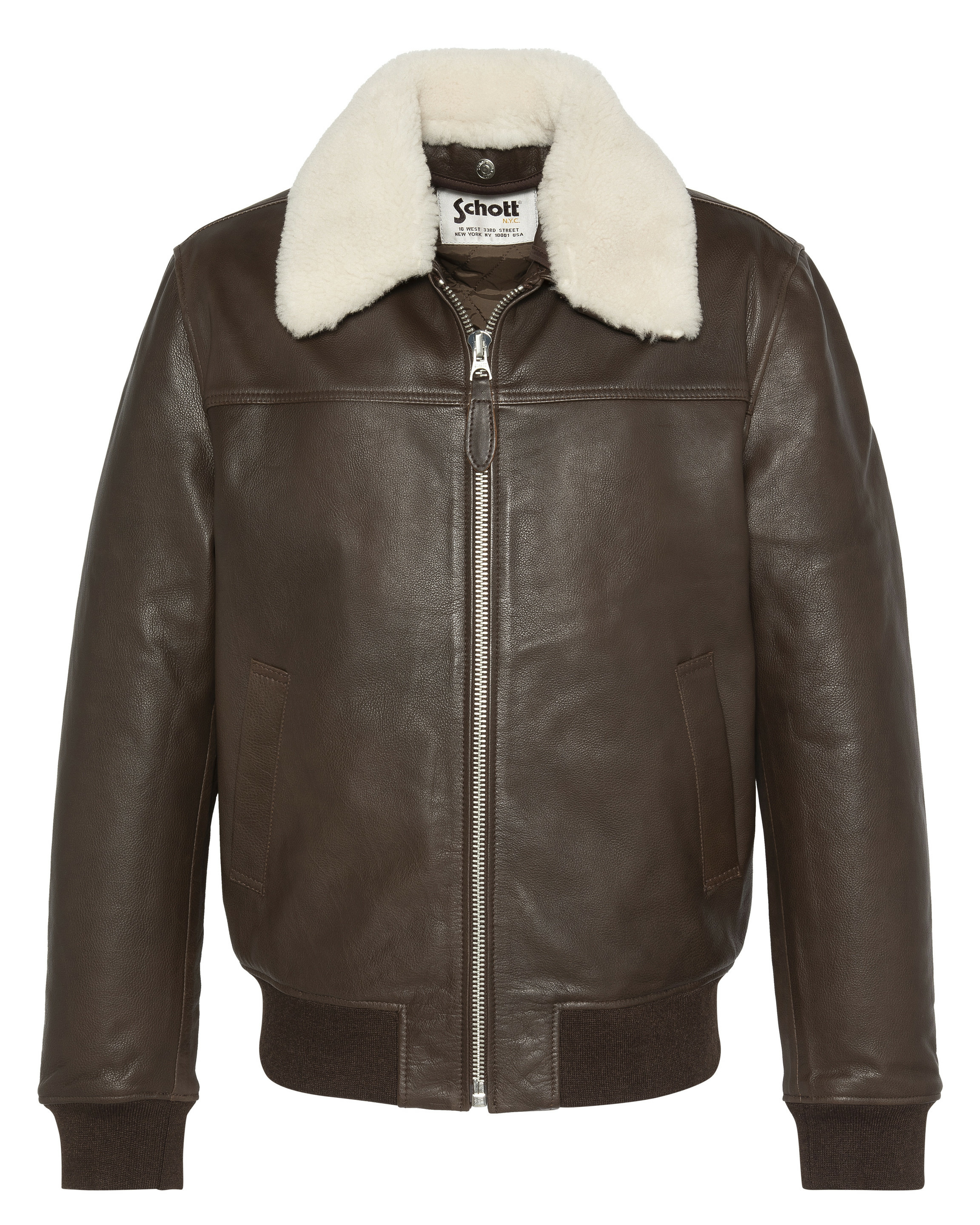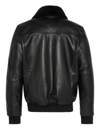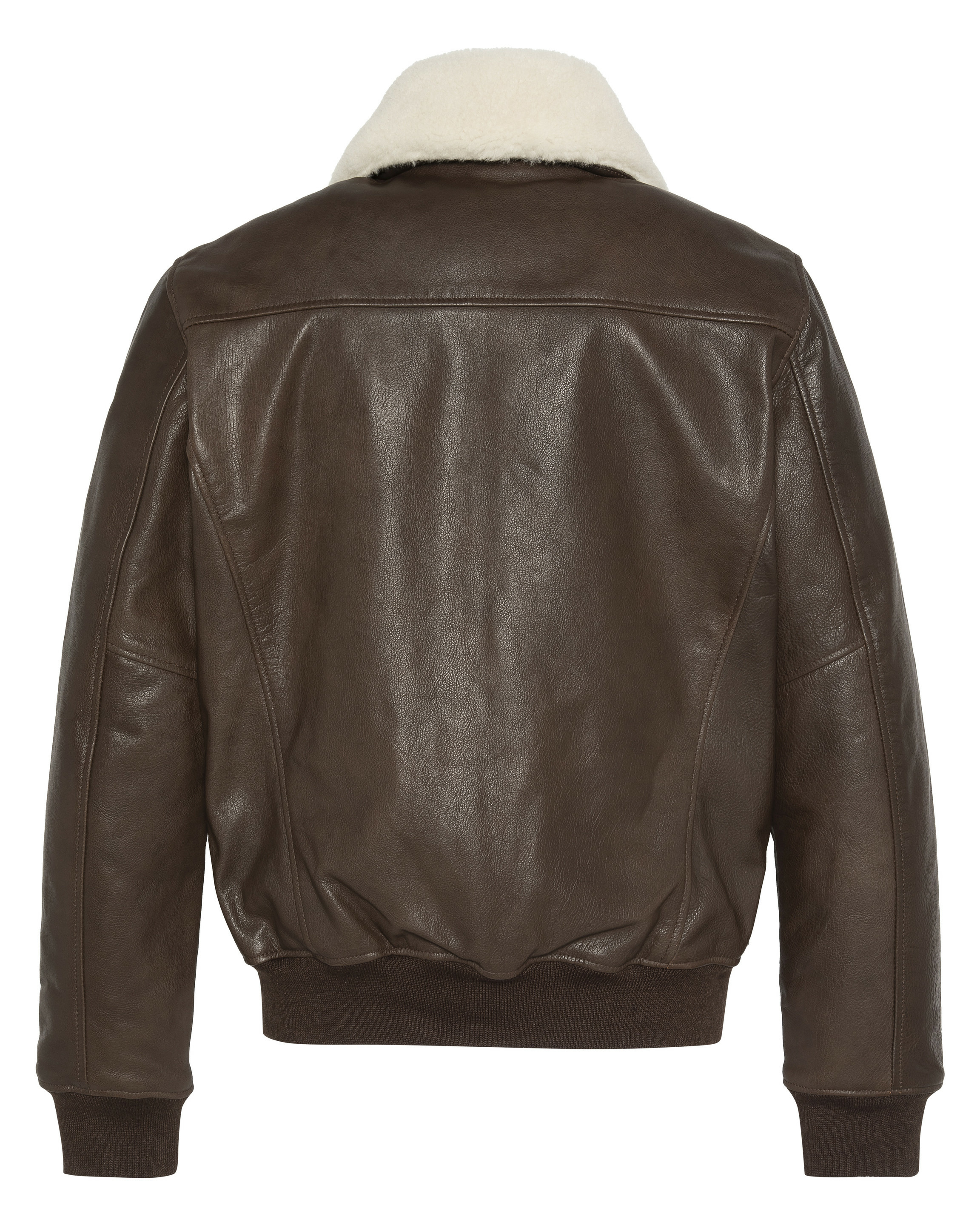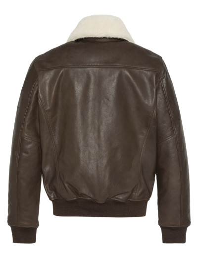 Blouson pilote avec col mouton amovible, cuir de vachette