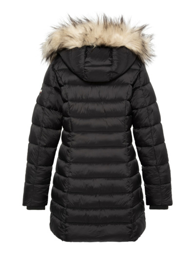Doudoune longue à capuche avec fausse fourrure