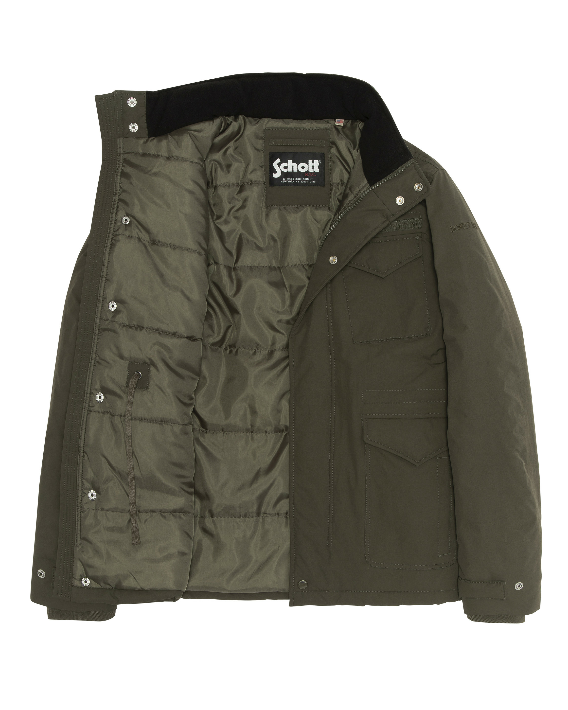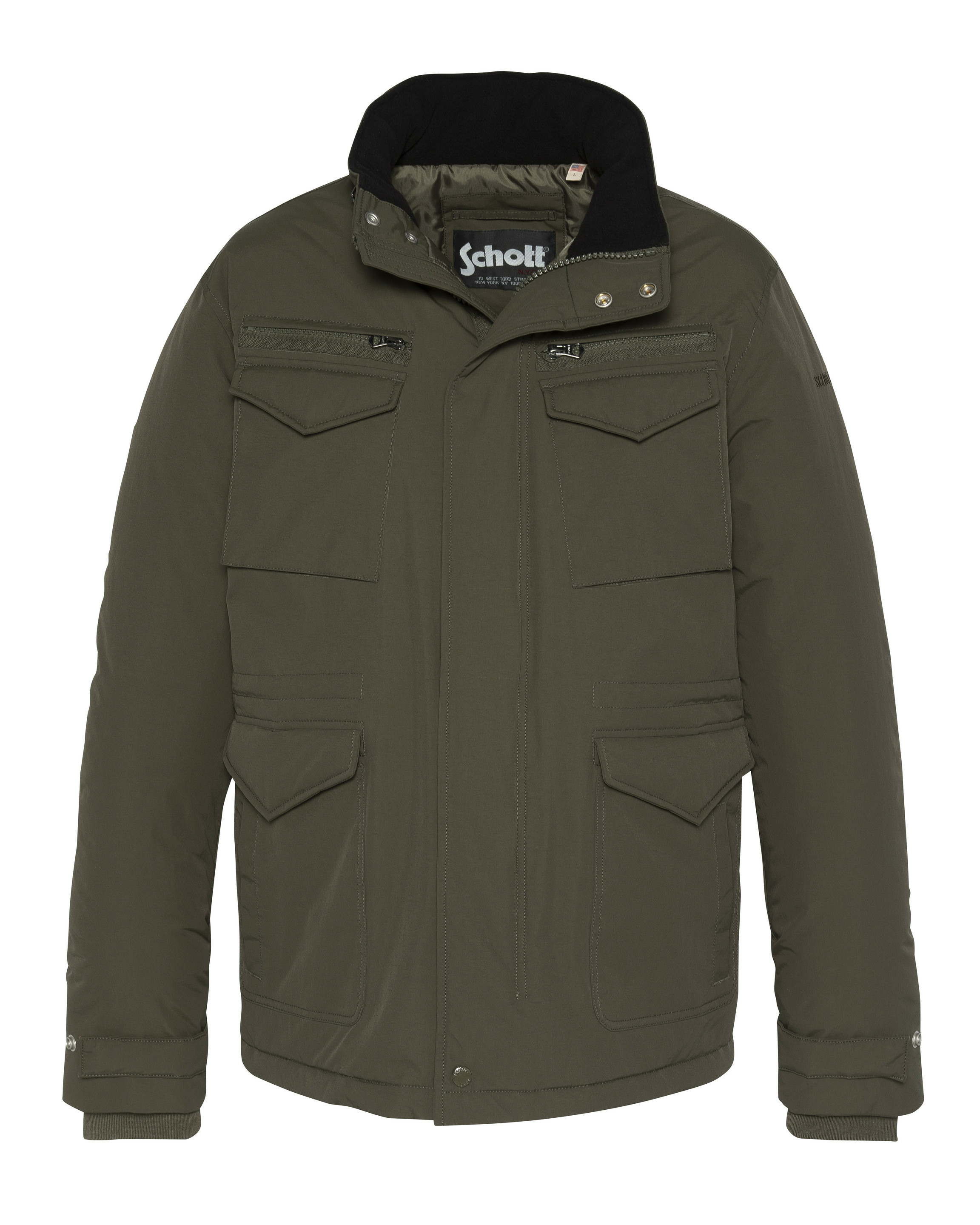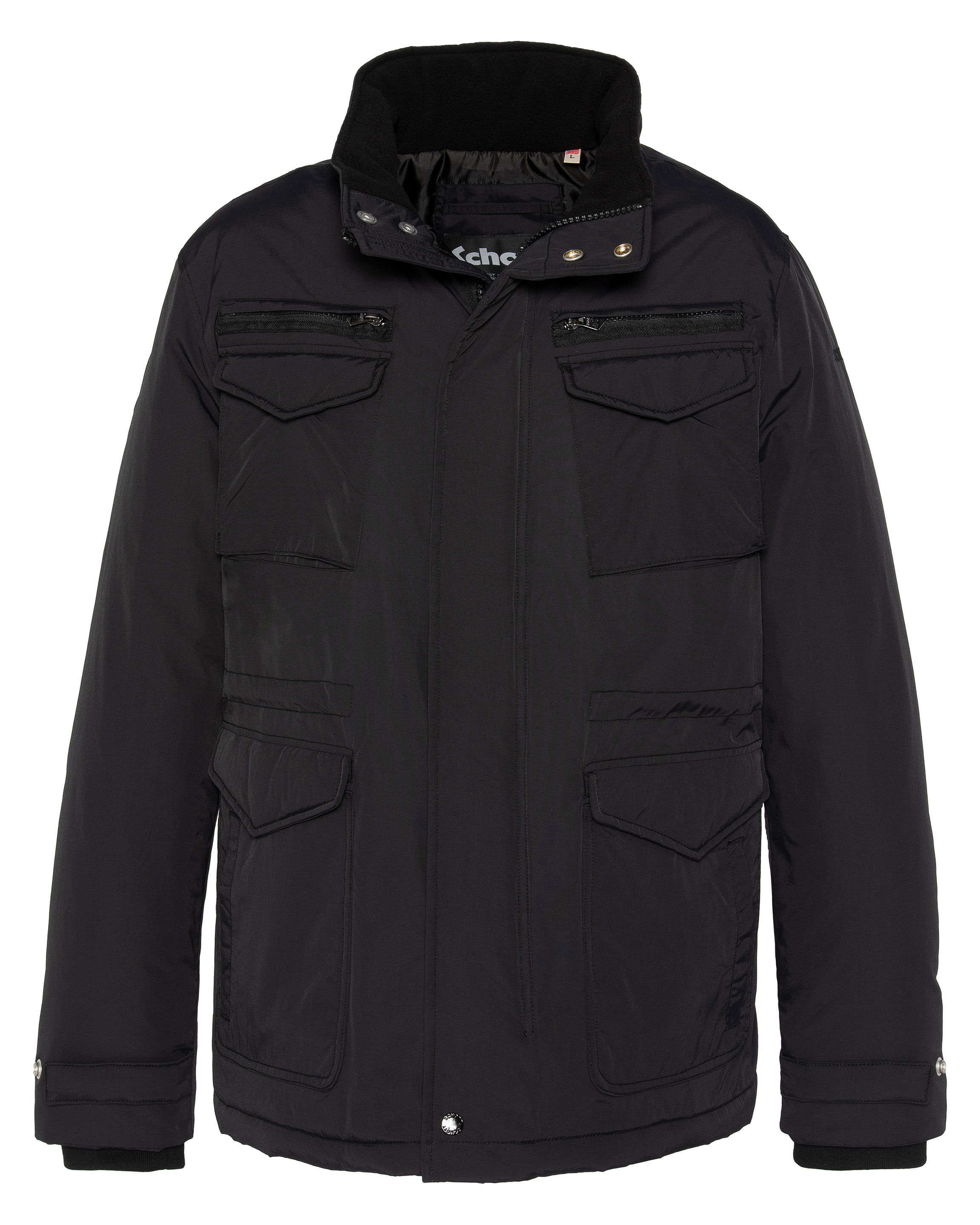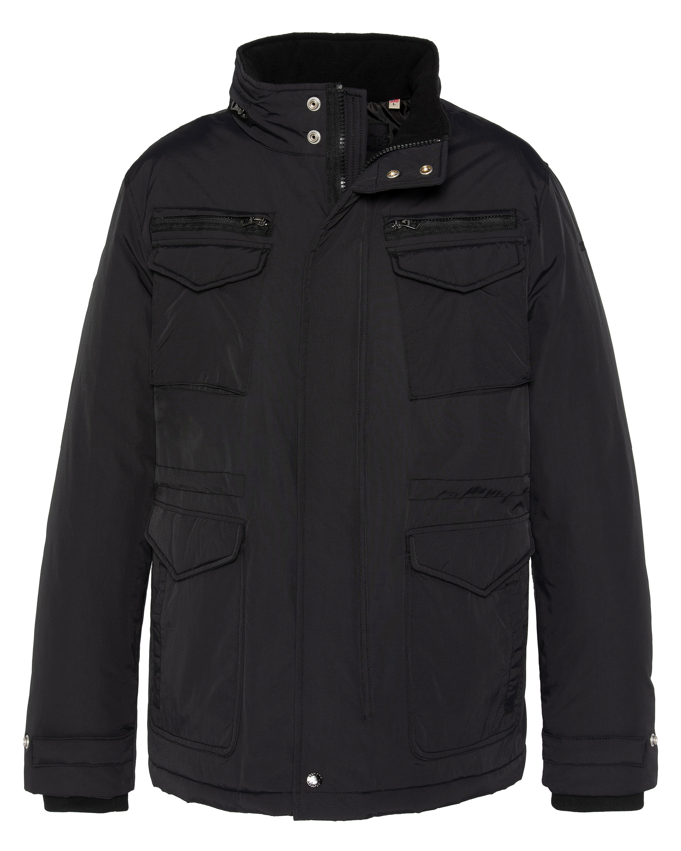 2 poches poitrine zippées et à rabat pressionné, 2 poches basses à rabat pressionné et 2 poches latérales