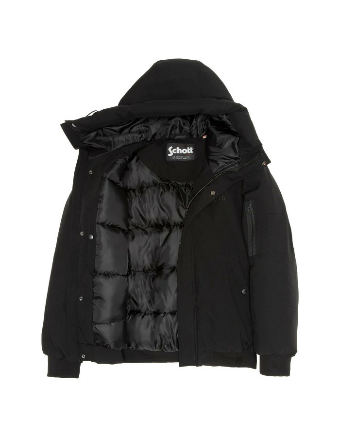 Cette parka courte à capuche Schott NYC propose une construction pensée pour offrir confort et protection. Le modèle présente une grande capuche fixe dotée d’un cordon de serrage qui permet un ajustement rapide. La fermeture frontale utilise un zip protégé par un rabat pressionné. Cette configuration assure une bonne tenue et limite les entrées d’air.