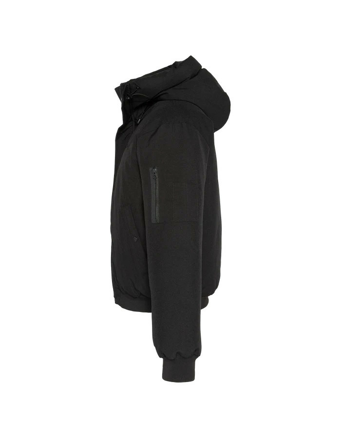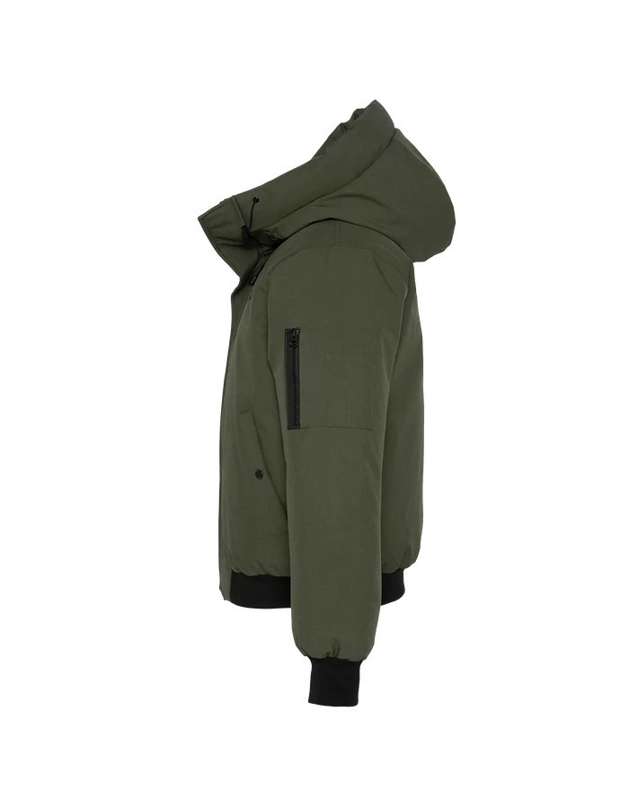 La surface extérieure affiche une apparence lisse et uniforme. Deux poches basses pressionnées offrent un rangement accessible. Une poche zippée sur la manche gauche ajoute une touche fonctionnelle inspirée des blousons techniques. Le modèle dispose également de deux poches intérieures. L’une possède une fermeture zippée sécurisée et l’autre utilise une pression. Ces rangements facilitent l’organisation du quotidien.