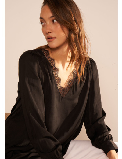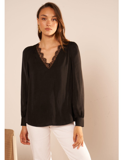 Blouse col V avec insert de dentelle