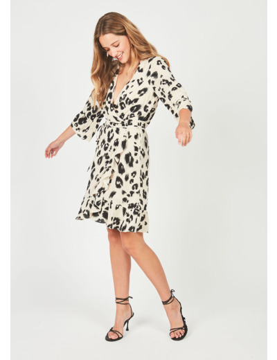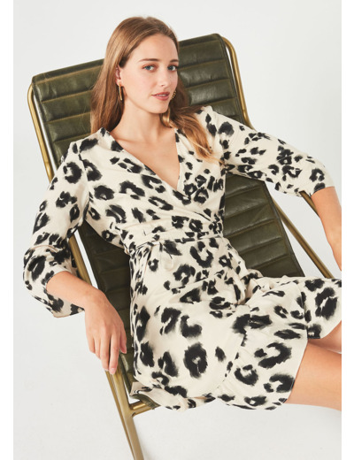 Robe courte à imprimé et manches 3/4