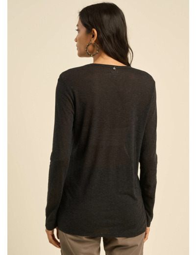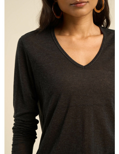 Tee-shirt col V et manches 3/4 en voile de laine