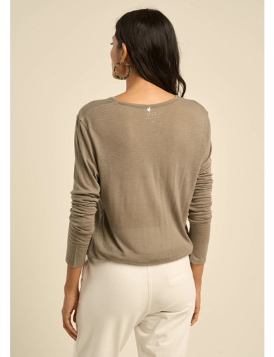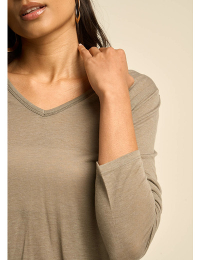 Tee-shirt col V et manches 3/4 en voile de laine