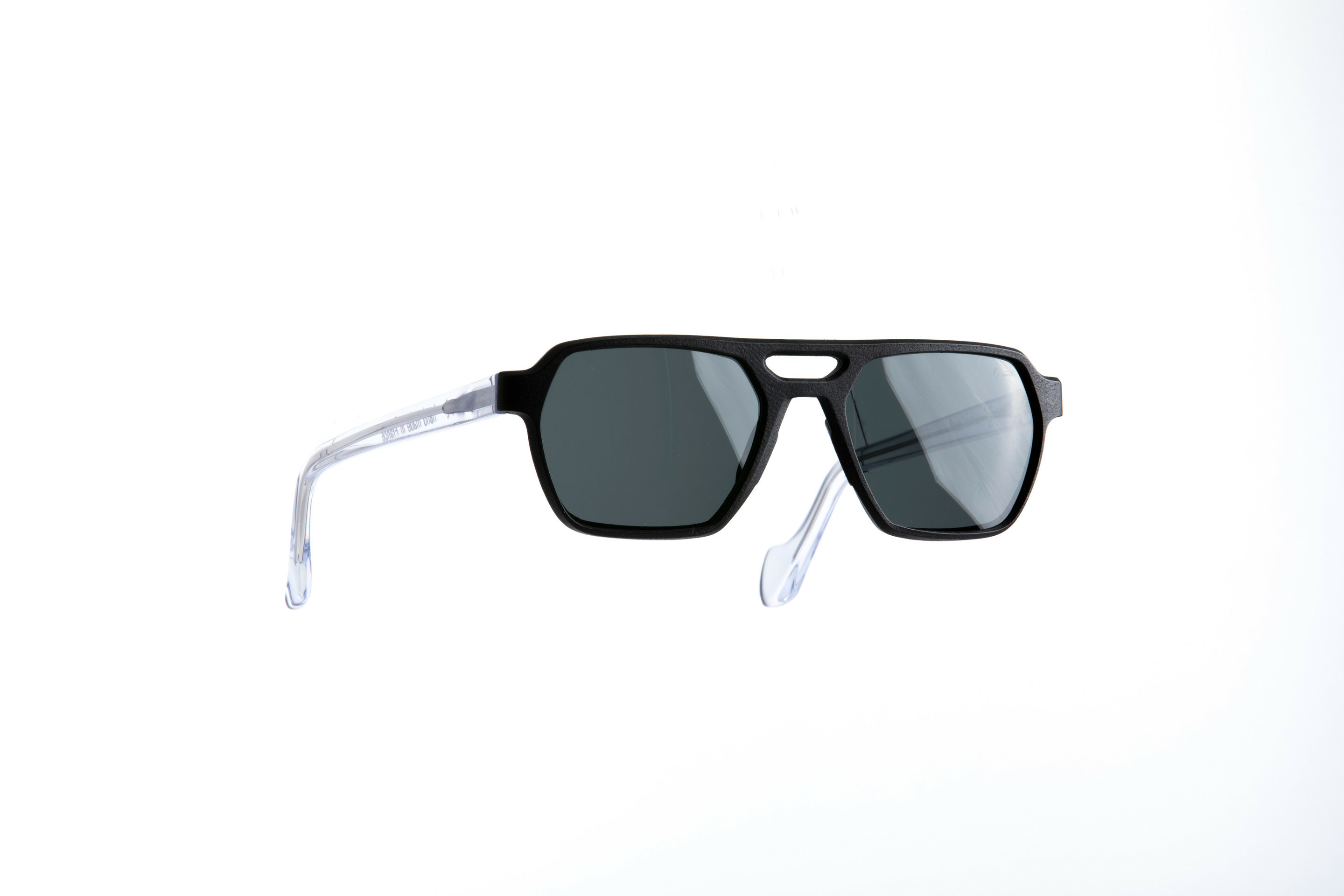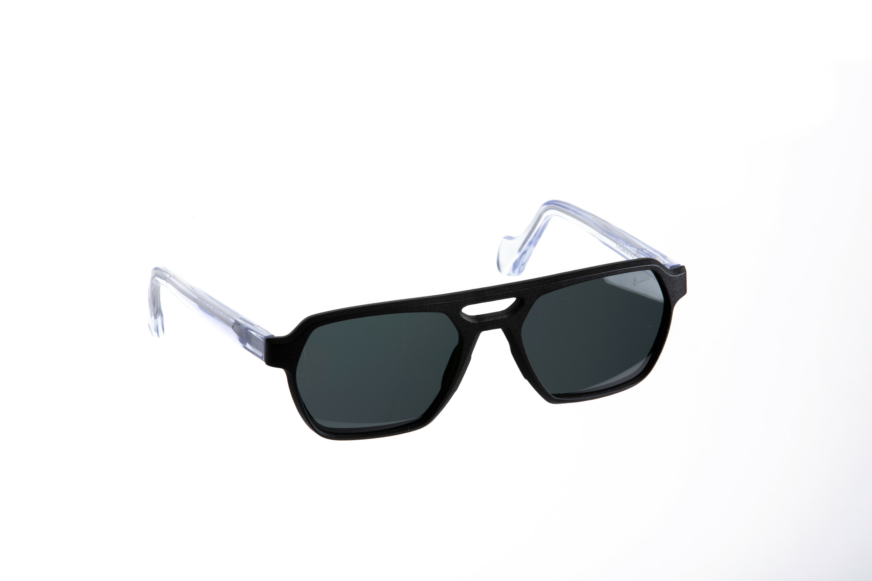 - Face en frittage de polyamide noir et branches acétate cristal.