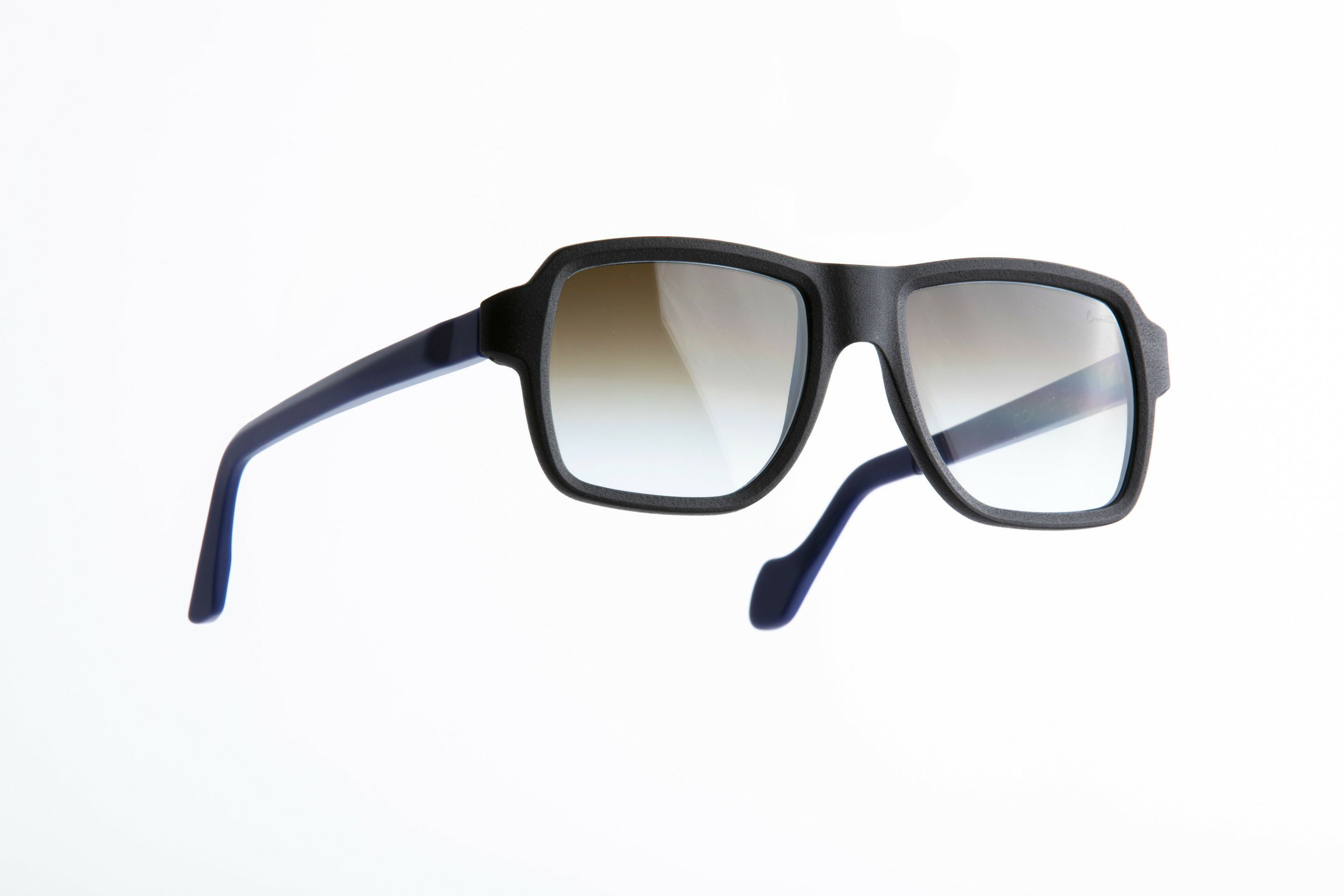 - Face en frittage de polyamide noir et branches acétate bleu foncé.