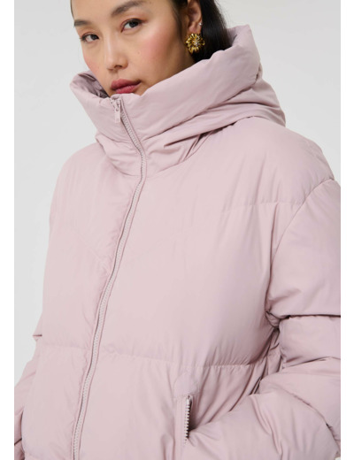 Cette doudoune matte couleur vieux rose possède des manches longues, deux grandes poches à zip aux côtés et un col montant. Elle se ferme au devant par un zip.