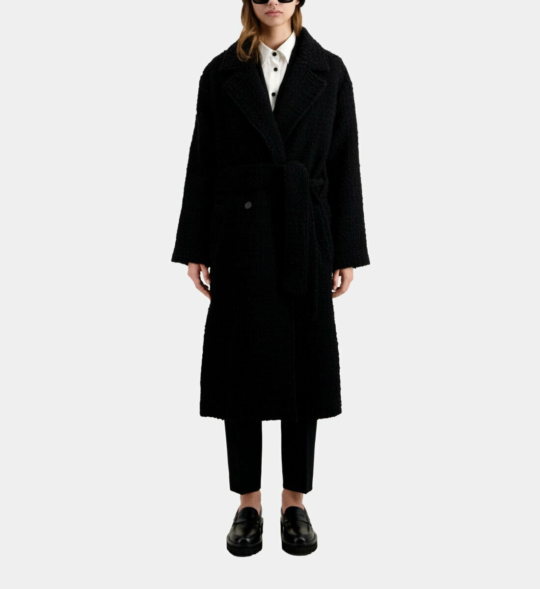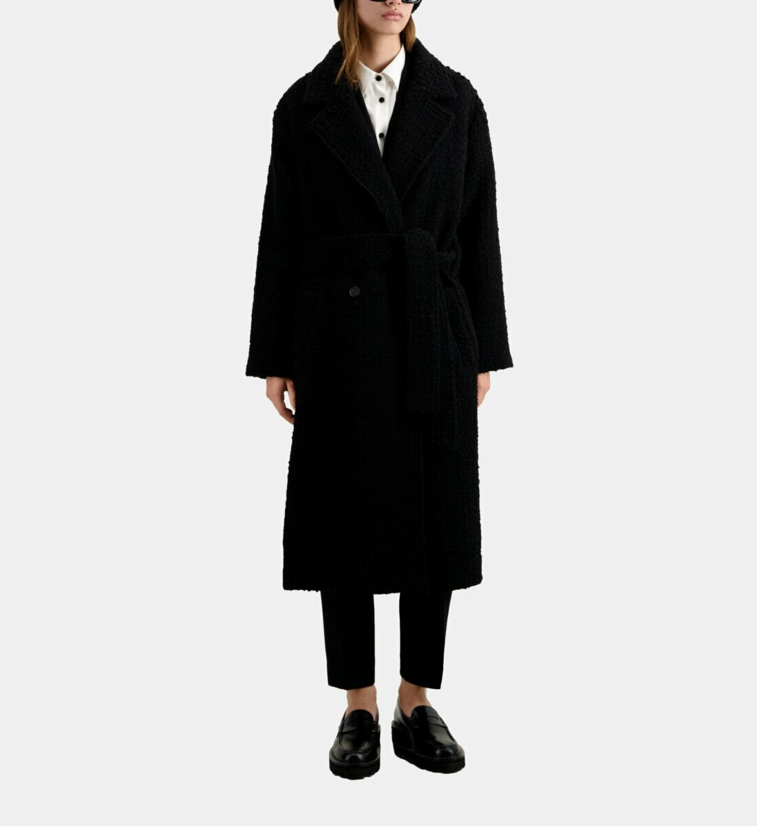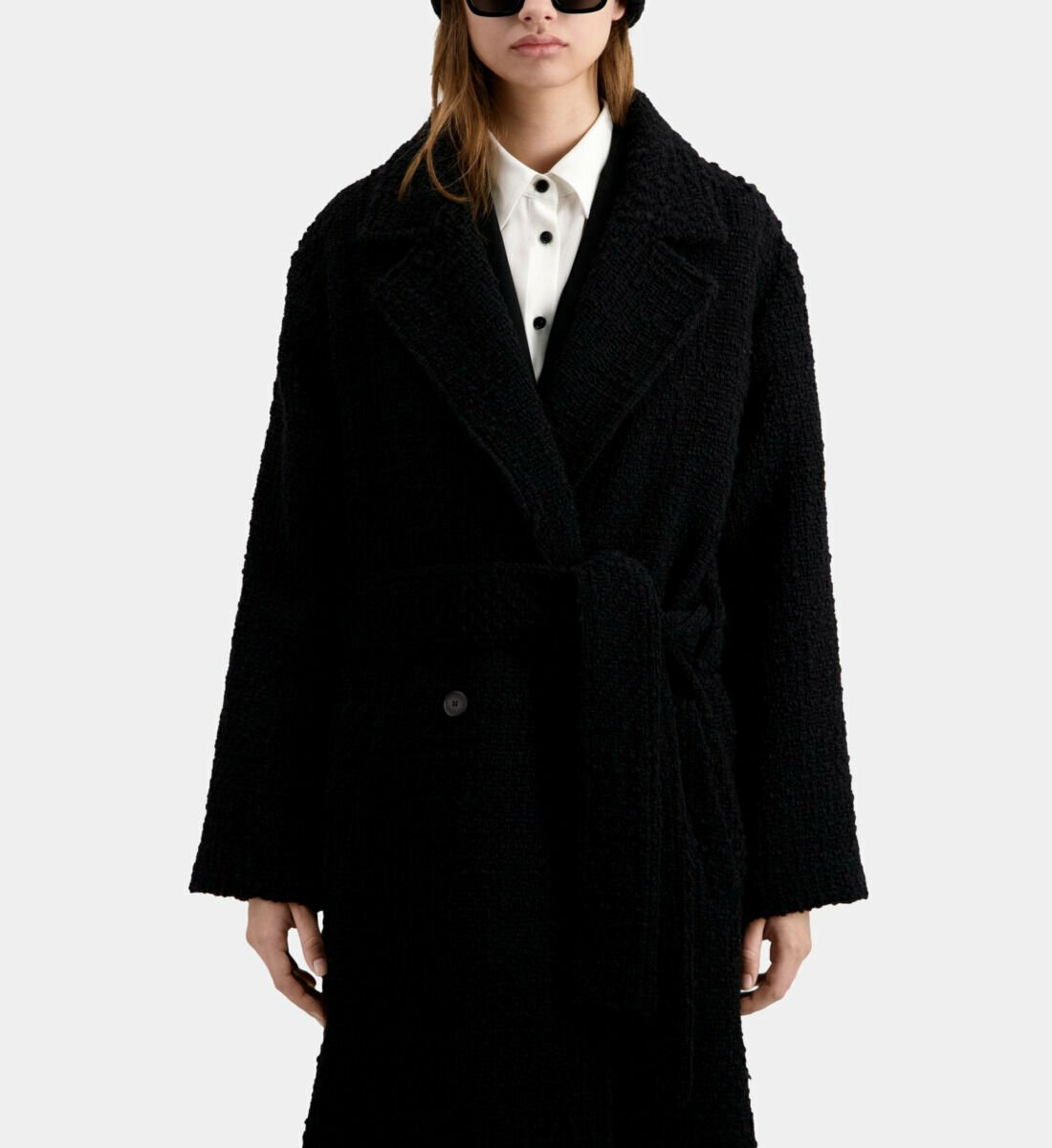 Manteau Ample Et Long En Tweed Avec Ceinture
