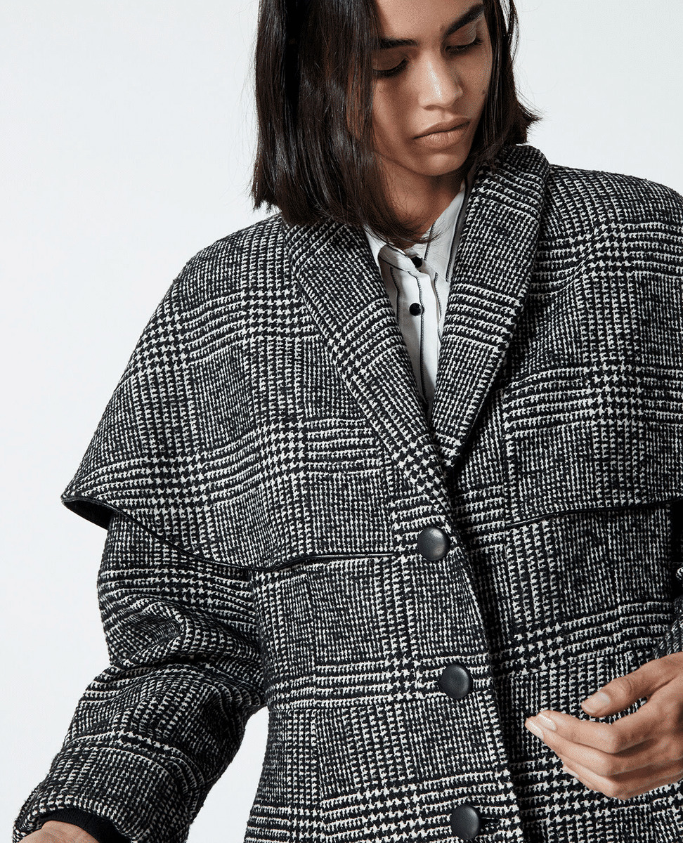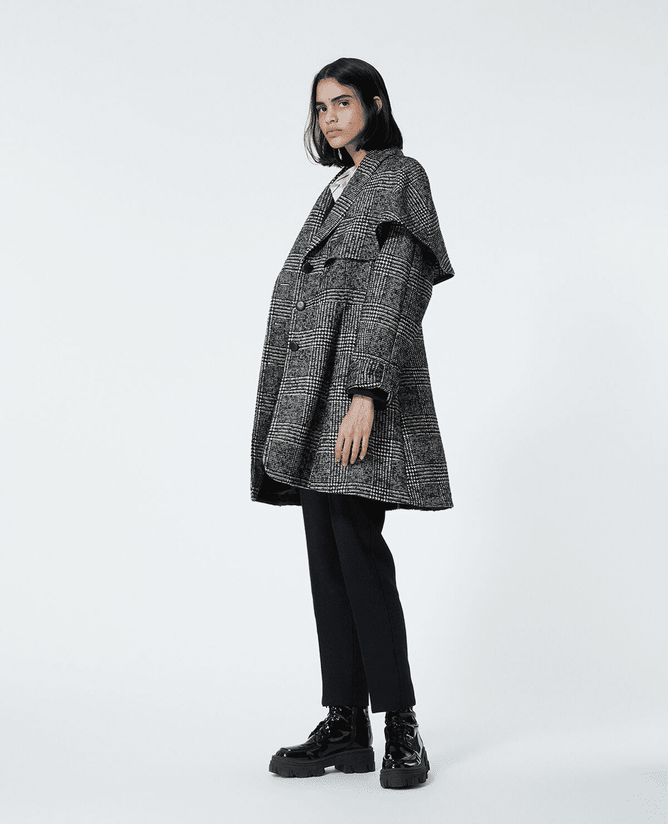 Découvrez le manteau avec effet cape au dos de The Kooples, une pièce incontournable pour affronter l'hiver avec élégance. Ce manteau allie sophistication et modernité, offrant une silhouette flatteuse qui met en valeur votre style unique. Sa coupe innovante avec l'effet cape au dos apporte une touche de dynamisme, tout en garantissant chaleur et confort.