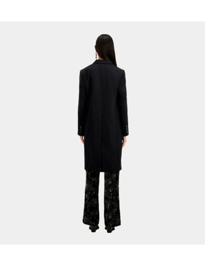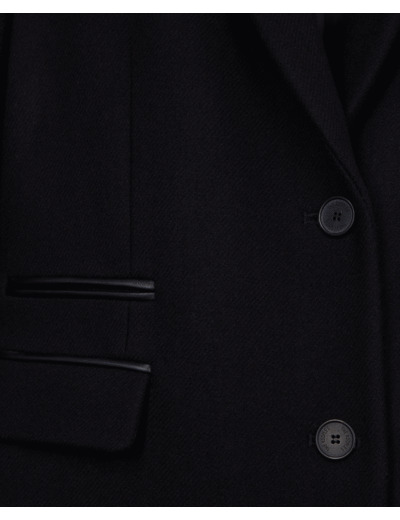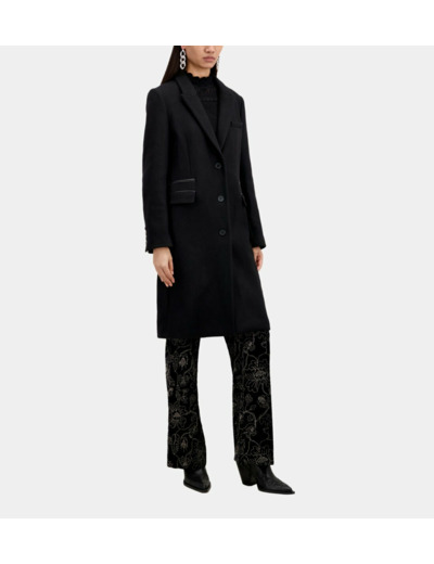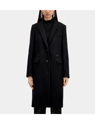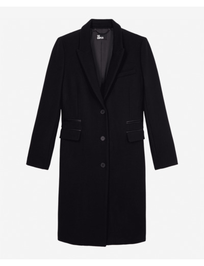 Manteau Classic 3 Boutons Sous Col Cuir