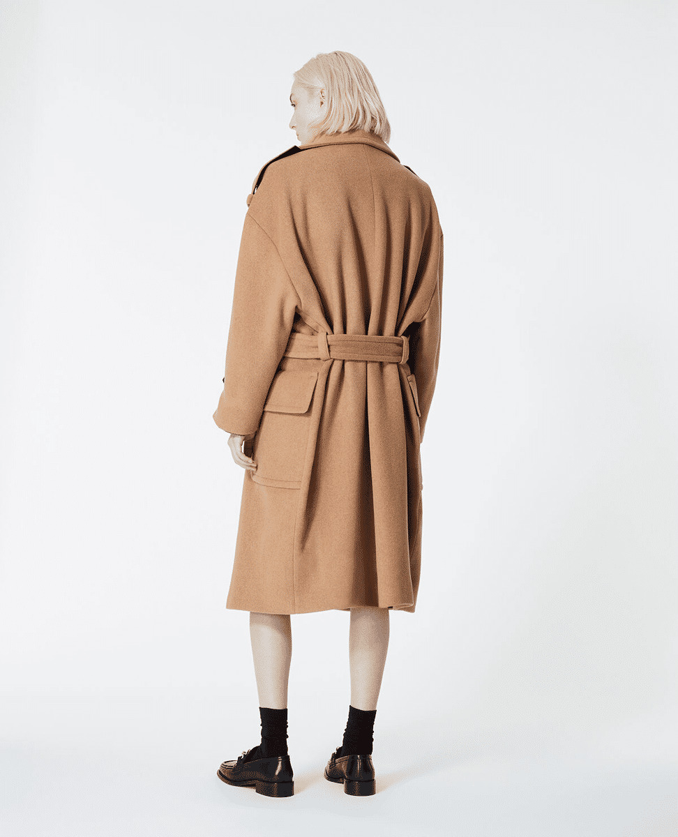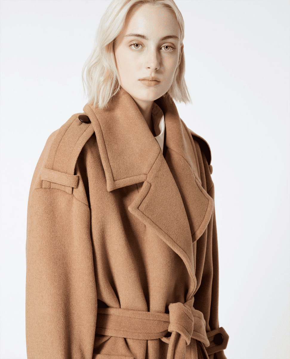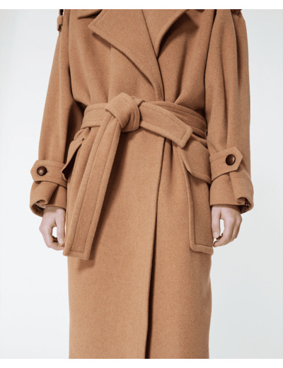 Manteau Long Avec Ceinture Et Large Col