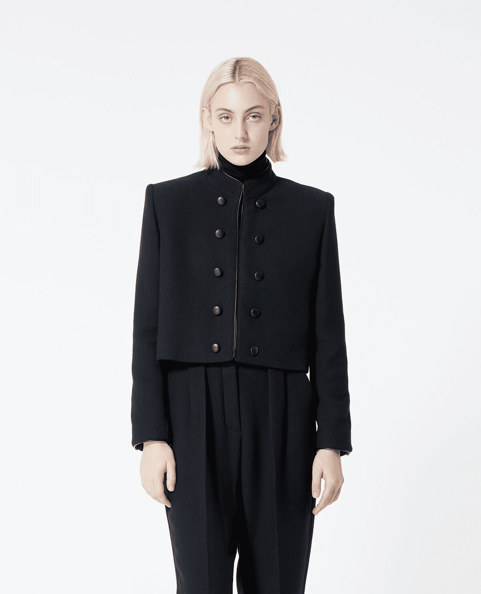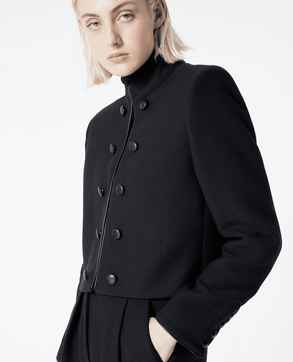 Veste Avec Doublure Boutonnage Avec Details Cuir