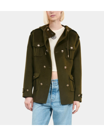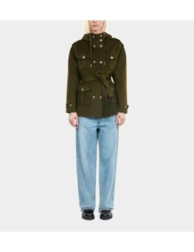 Blouson Style Officier En Laine Mélangée Kaki