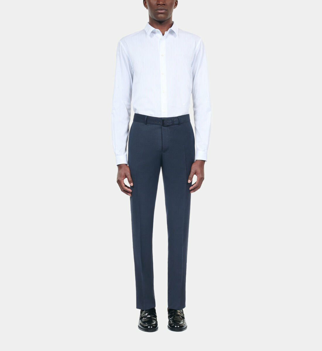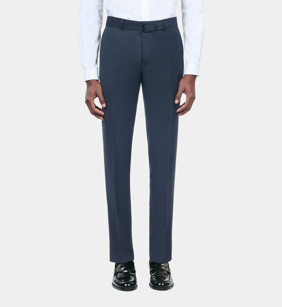 Imaginez-vous dans ce pantalon, associé à une chemise blanche impeccable et des derbies en cuir, prêt à impressionner lors d'une réunion ou d'un événement spécial. Sa teinte bleu marine polyvalente s'harmonise facilement avec une multitude de couleurs, vous permettant de créer des ensembles variés et stylés.