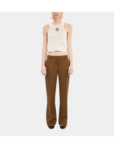 Sa teinte marron polyvalente permet de l'associer facilement avec une blouse blanche pour un look chic au bureau ou avec un t-shirt graphique pour une sortie décontractée entre amis. Les détails soignés et la finition impeccable témoignent du savoir-faire de The Kooples, faisant de ce pantalon un choix idéal pour celles qui recherchent à la fois style et sophistication.