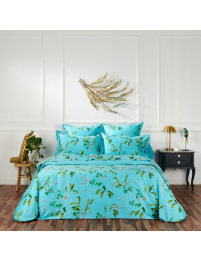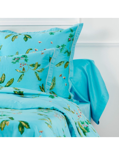La parure de lit Grâce apporte une touche de fraîcheur et de nature à votre chambre avec son imprimé floral aux couleurs vives. Conçu en satin de coton 120 fils/cm², ce linge de lit offre un toucher soyeux et une grande douceur pour un sommeil confortable.