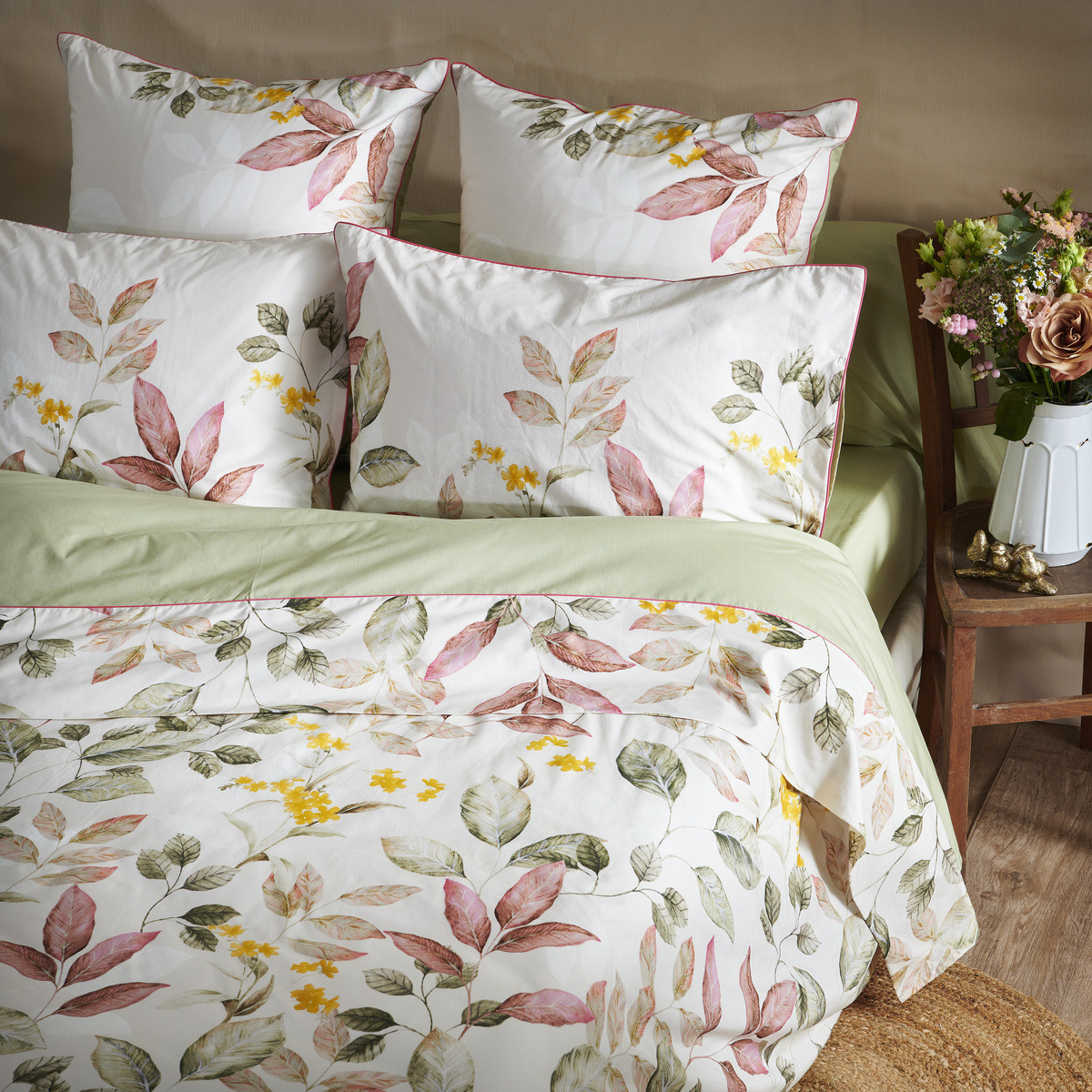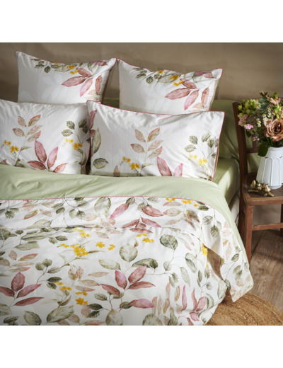 Découvrez la collection Maria, un mélange parfait d'élégance intemporelle et de motifs floraux inspirants. Fabriquée avec soin en percale de coton 80 fils/cm², cette gamme de linge de maison incarne la douceur et le confort. Les tons poudrés et sauges subtils évoquent la tranquillité d'un jardin automnal, tandis que les délicates feuilles d'automne et les fleurs jaunes soleil apportent une touche chaleureuse et vivifiante.