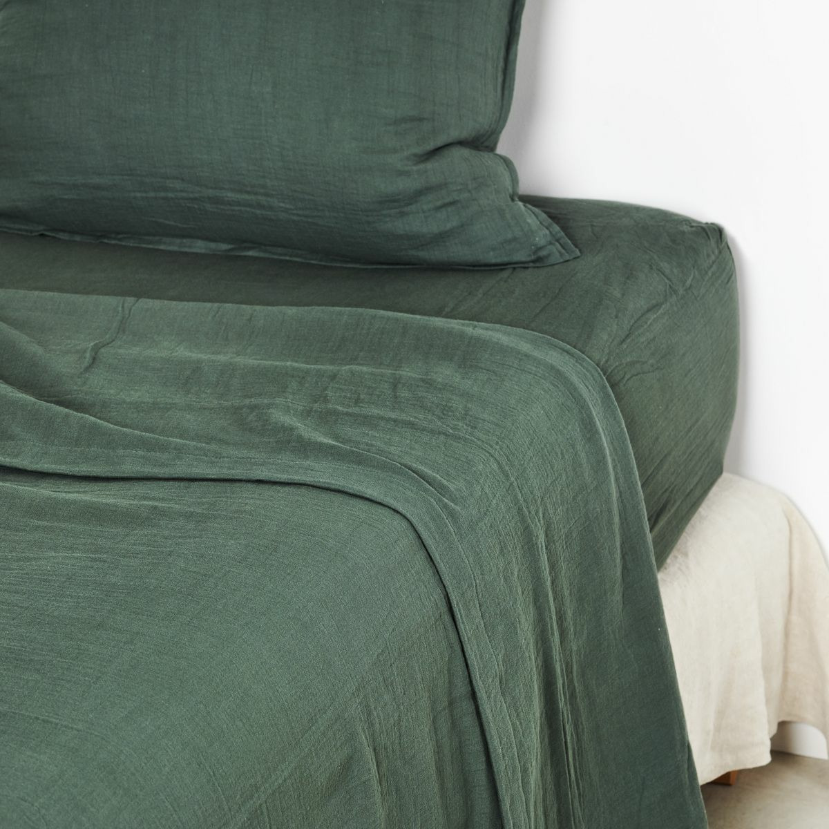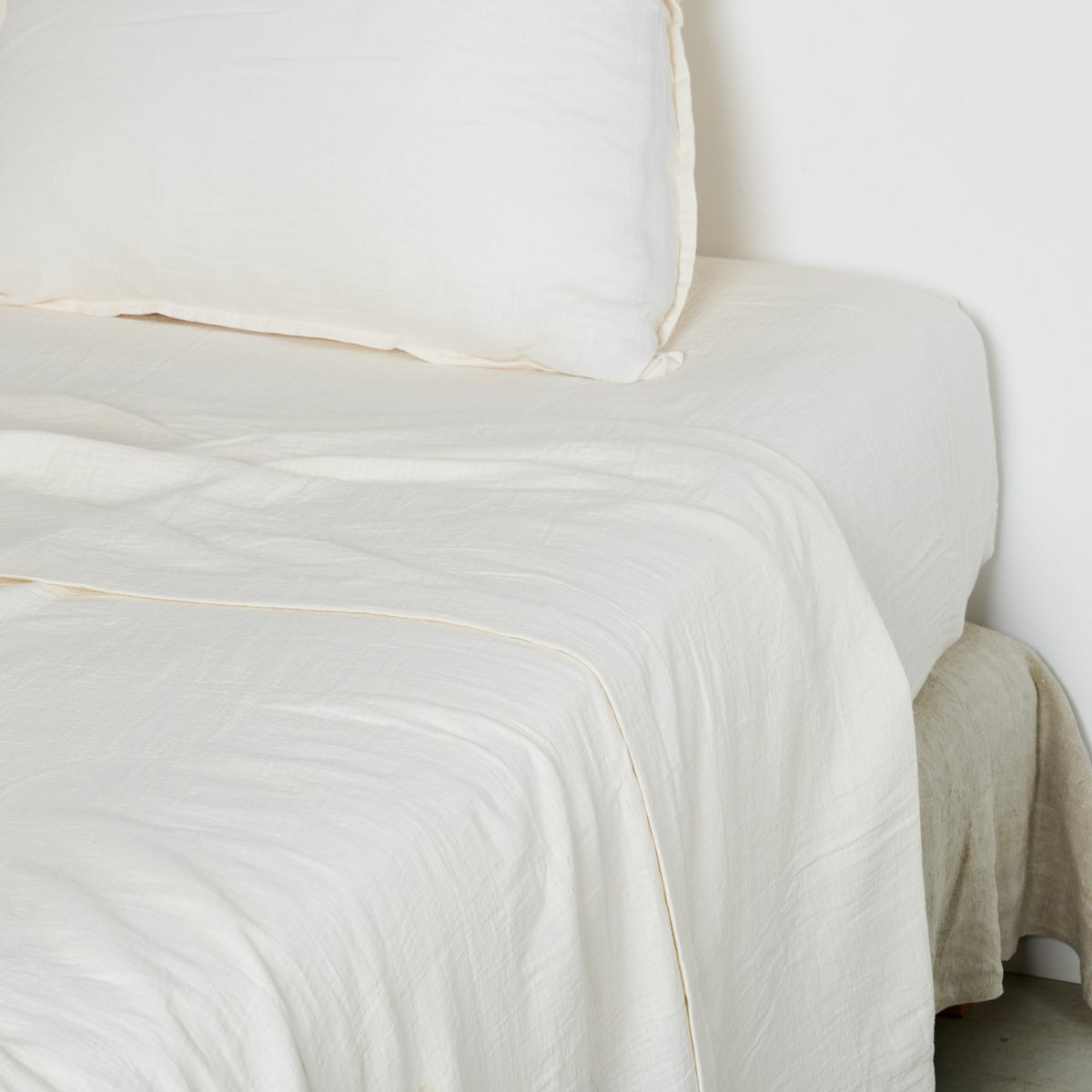 Découvrez notre nouveau drap plat en gaze de coton, conçu pour offrir un confort incomparable et une touche d'élégance naturelle à votre lit.