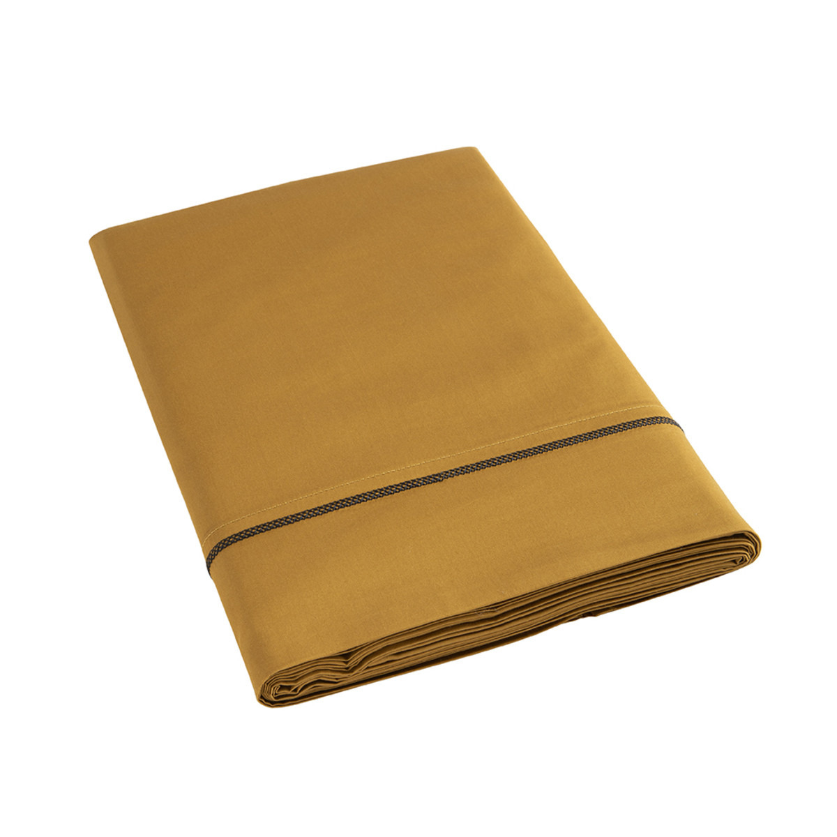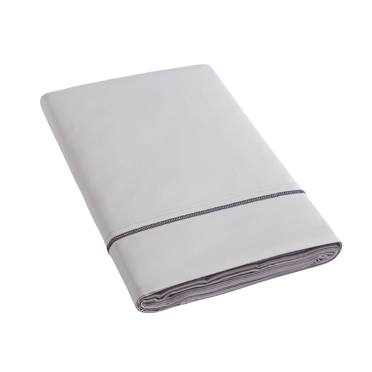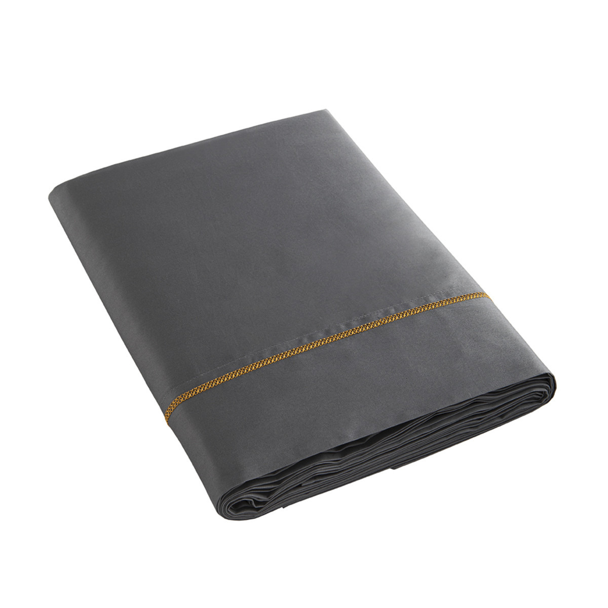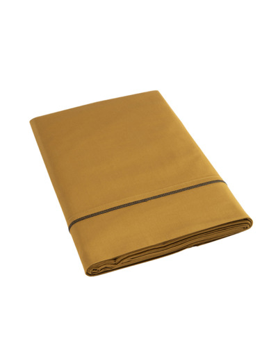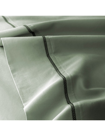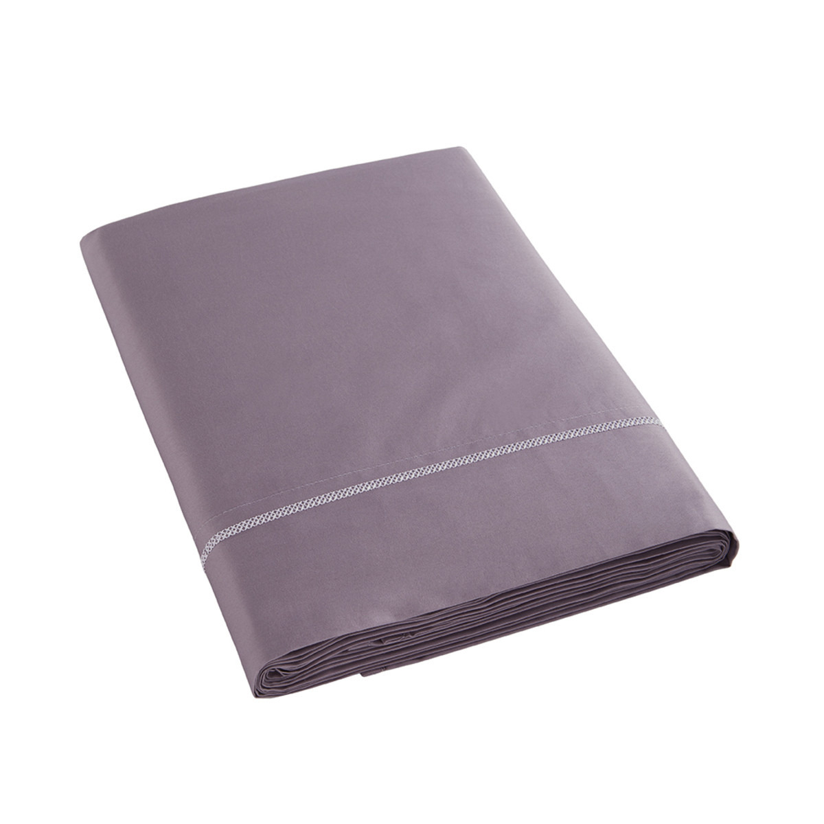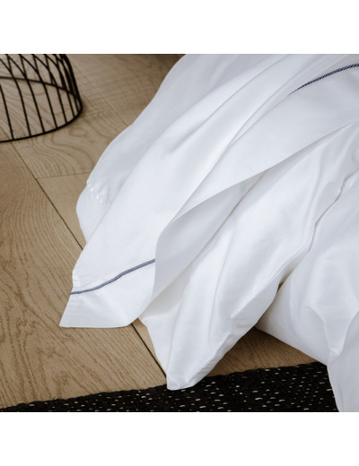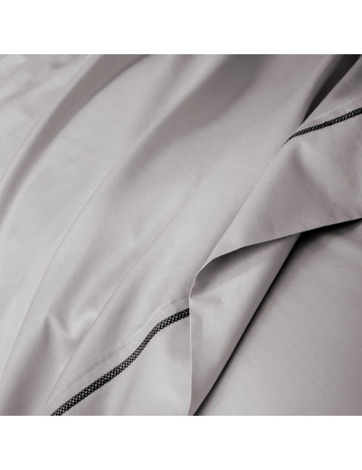 Ce drap plat se décline en 8 coloris : blanc avec bourdon bleu marine, anthracite avec bourdon or, lilas avec bourdon rose pâle, lin avec bourdon marron, or avec bourdon noir, perle avec bourdon anthracite, sauge avec bourdon vert sapin, bleu nuit avec bourdon blanc