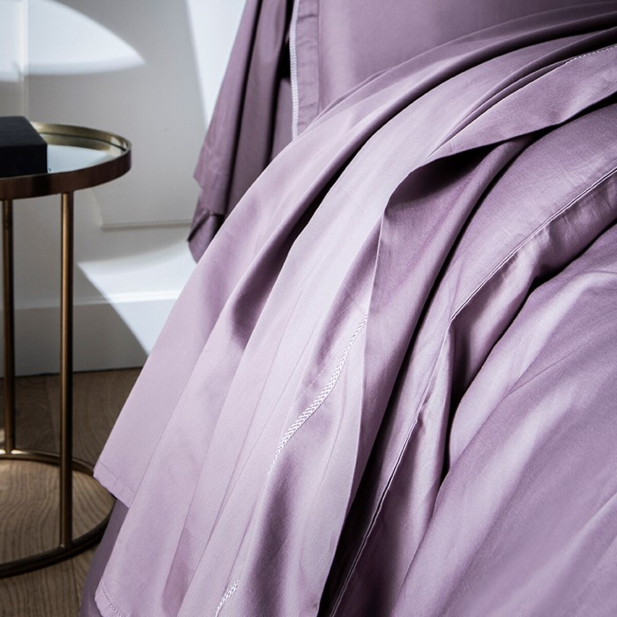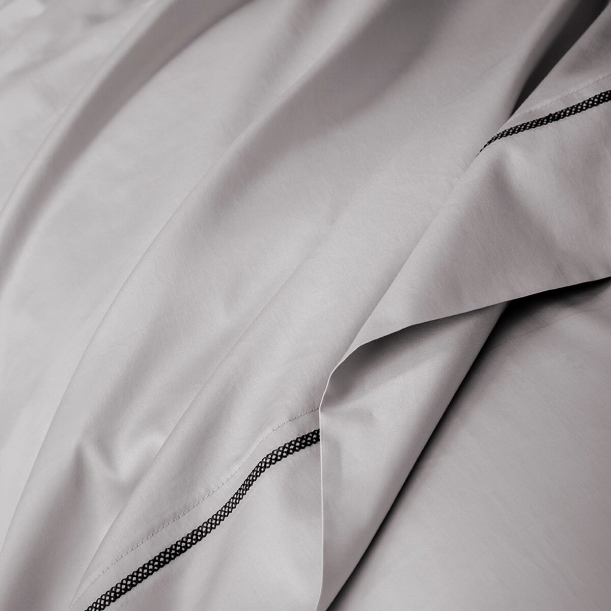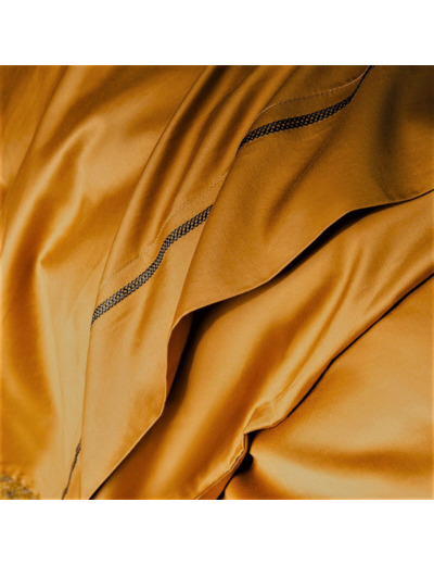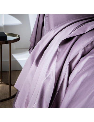 Le drap plat Opium est en 100% satin de coton longues fibres 120 fils/cm². Un joli bourdon brodé lui apporte une touche raffinée.