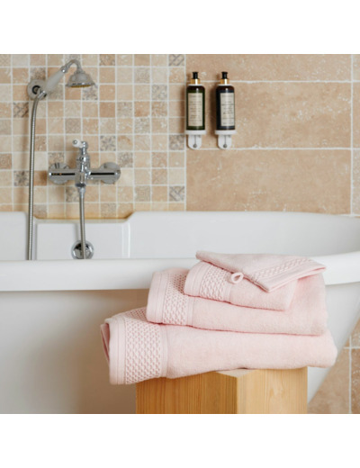 Cette gamme se décline en serviettes, draps de bain et douche, gants de toilette, peignoirs, paréos, éponges cheveux et tapis de bain.