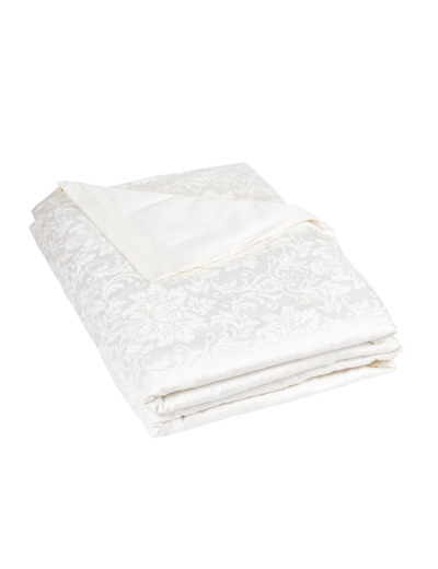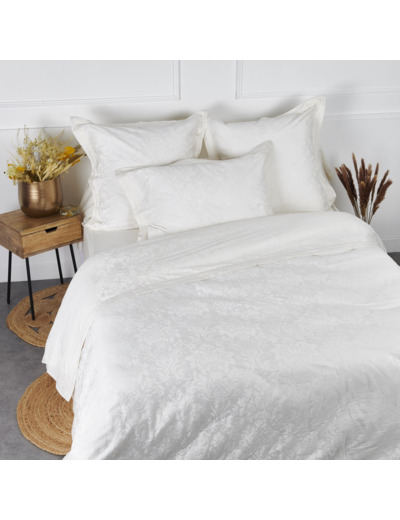 Le dessus de la housse de couette, avec son impression effet Jacquard laisse apparaître de somptueux motifs floraux à l'aspect mat sur un fond brillant et soyeux.