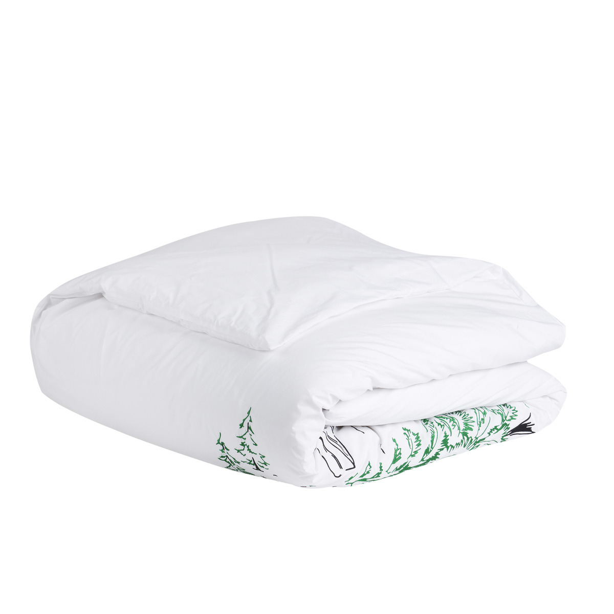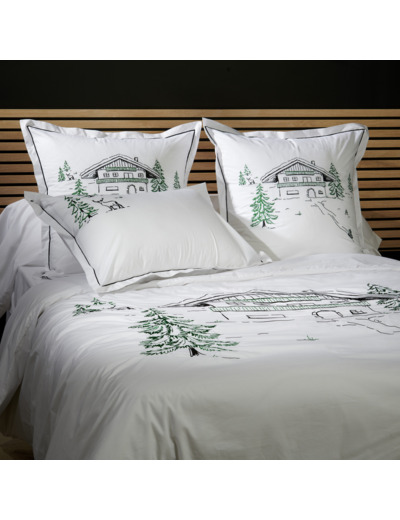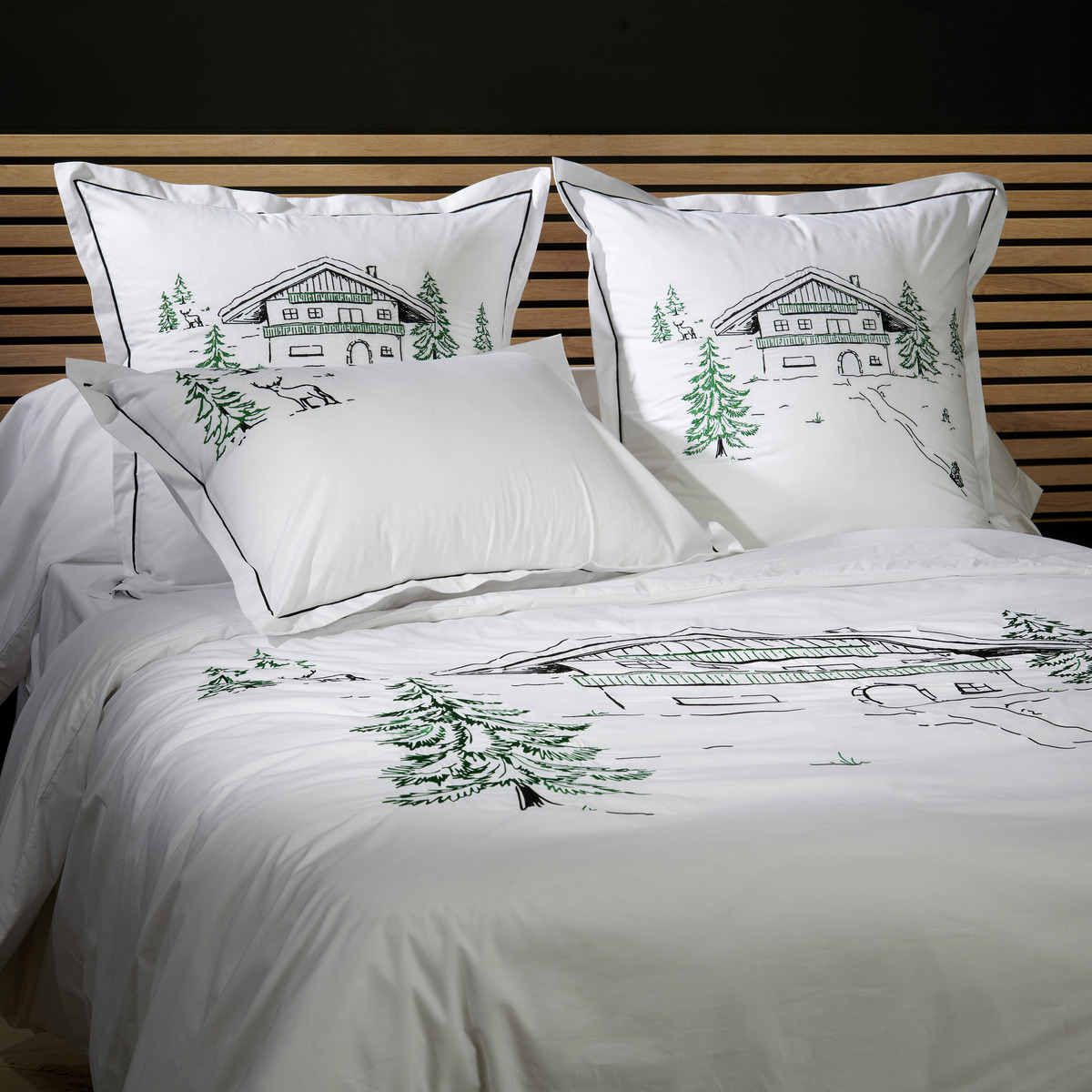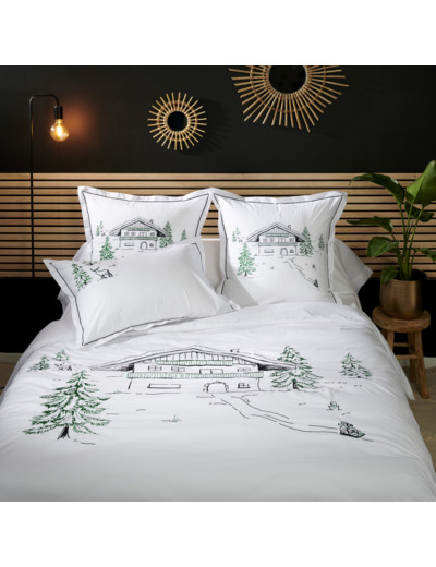 La parure de lit Hiver est conçue pour vous apporter un confort douillet. Fabriquée en percale de coton 80 fils/cm² douce et résistante, cette parure de lit est parfaite pour créer une atmosphère chaleureuse et accueillante. Les motifs intemporels brodés en vert et noir représentent parfaitement la saison hivernale, avec des motifs de chalet, de sapin et de luge en bois traditionnelle. Choisissez cet ensemble de grande qualité qui donnera beaucoup de caractère à votre chambre à coucher.