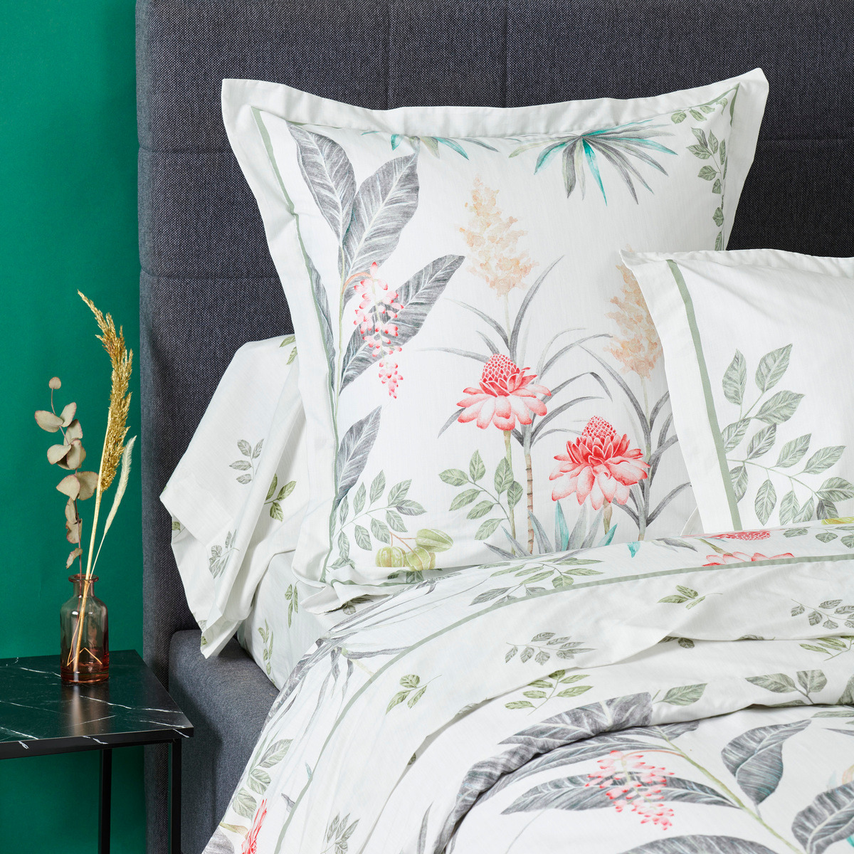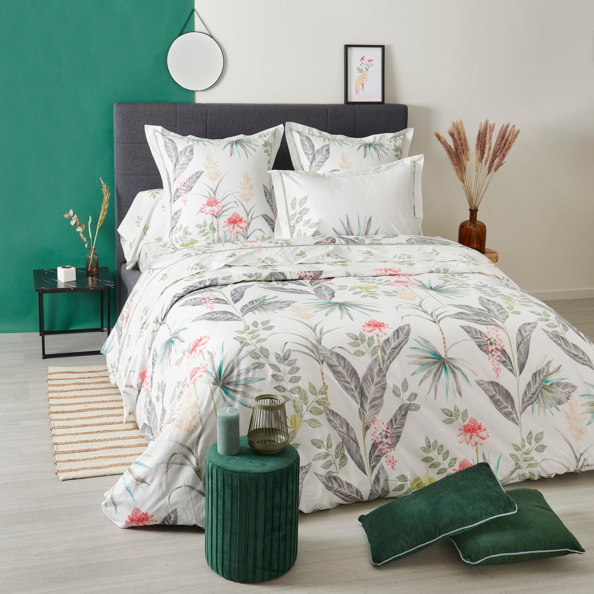 La douceur de la percale de coton grâce à son tissage ultra serré de 80 fils/cm² offre une sensation unique au toucher et un style incomparable dans votre chambre. La collection Madinina est pensée pour créer une oasis calme et chaleureuse où vous pouvez profiter de la beauté éternelle de la nature.