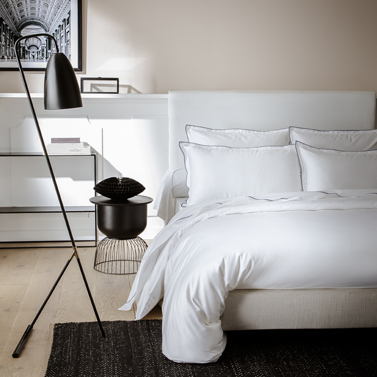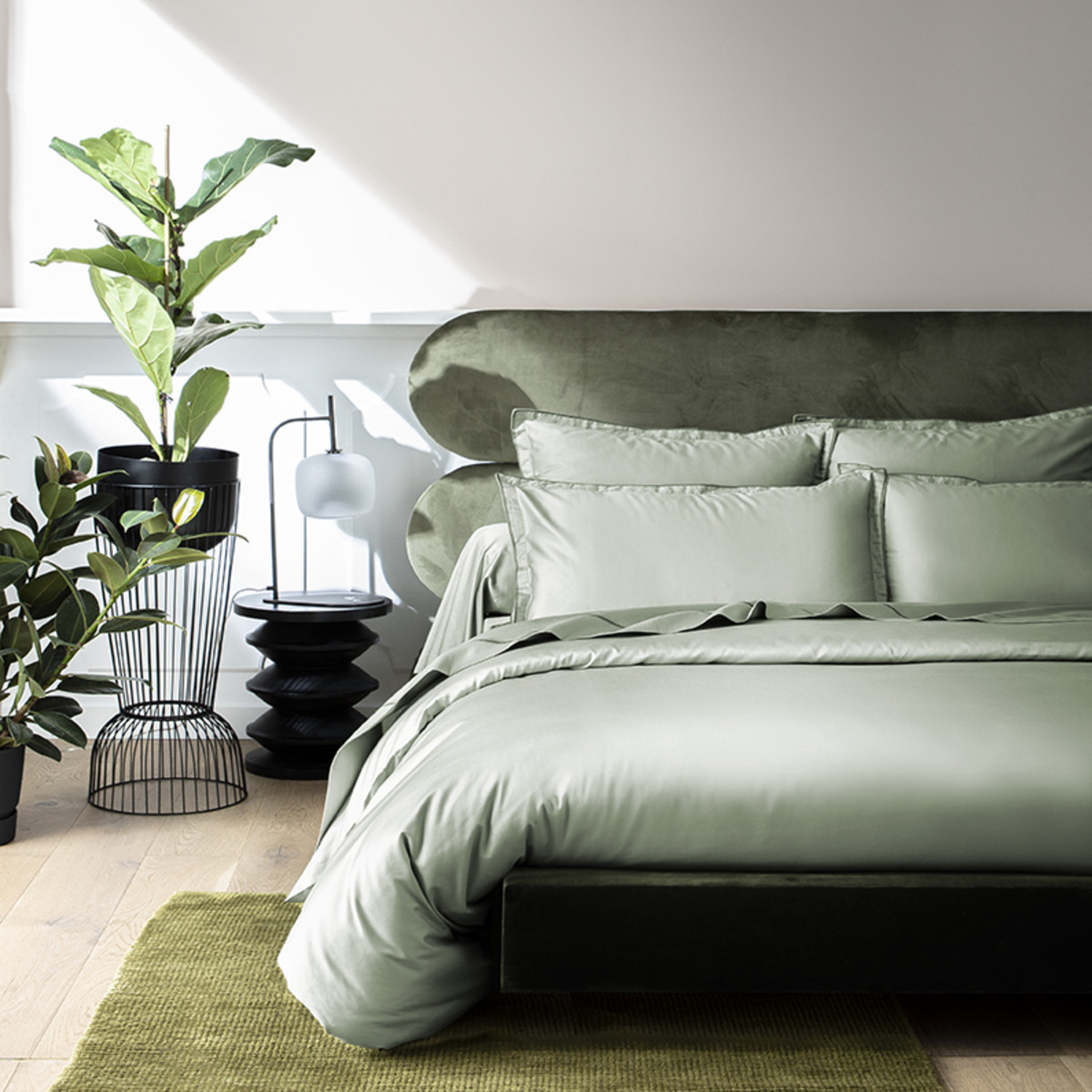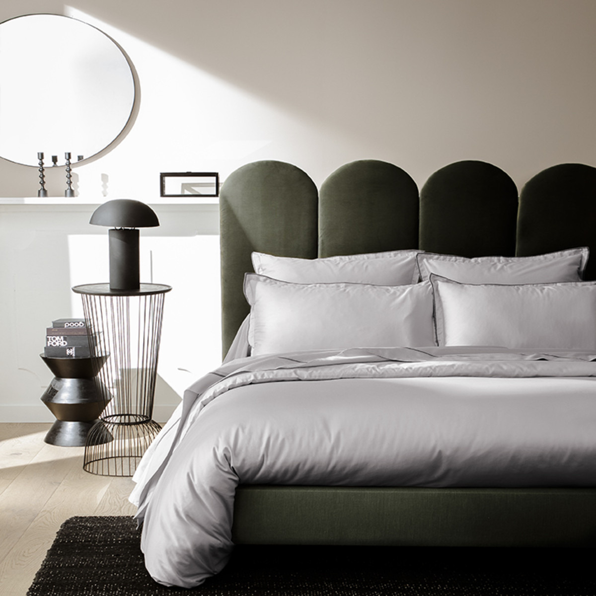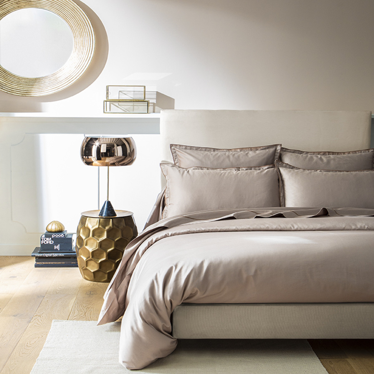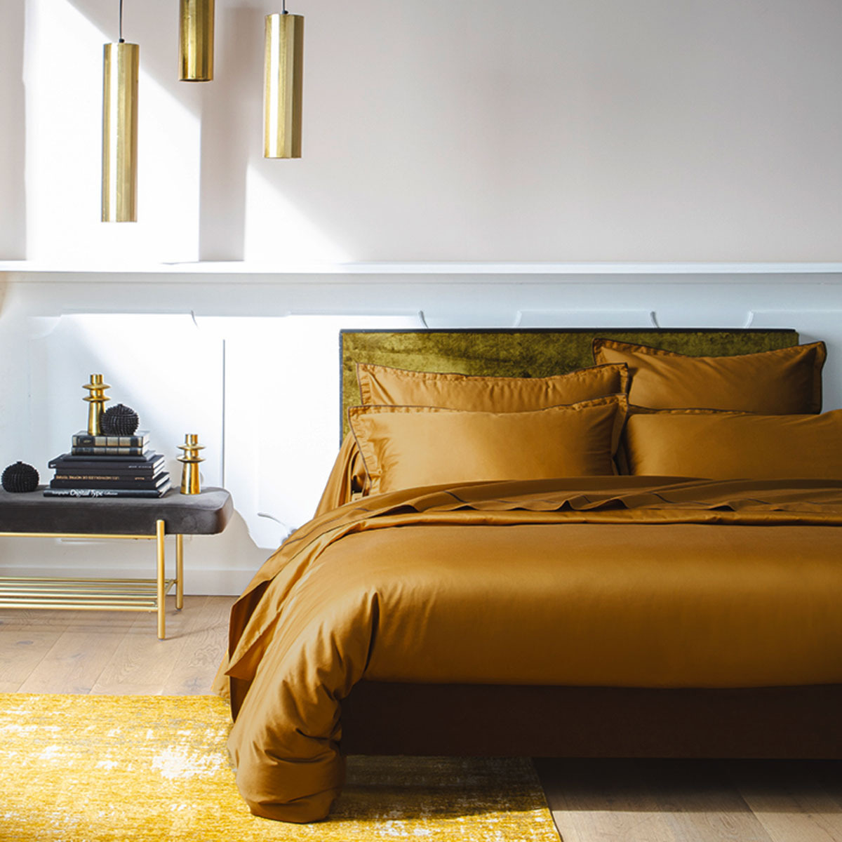 La housse de couette Opium est en 100% satin de coton longues fibres 120 fils/cm².