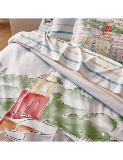 Découvrez toute la collection Paysage Varois comprenant : housse de couette, drap-housse, drap plat, taie d'oreiller et taie de traversin.
