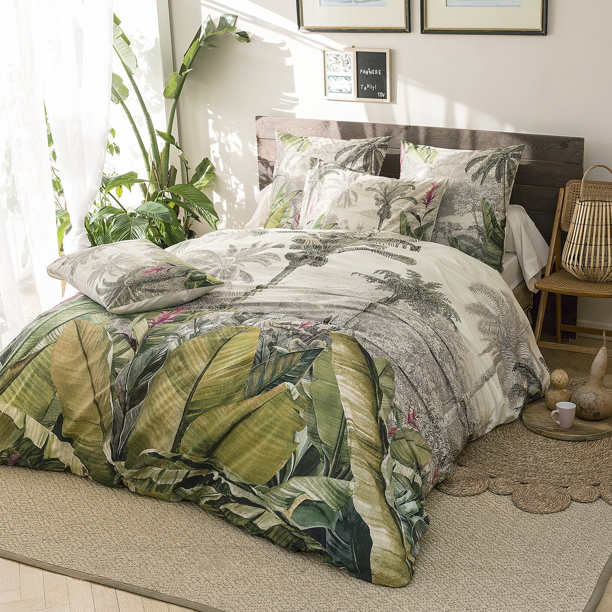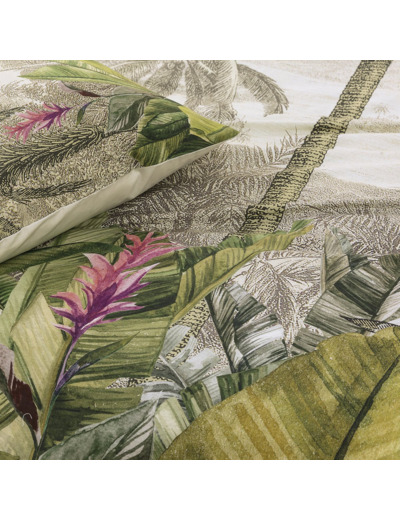 La parure de linge de lit Tahiti Tradition des Vosges a été entièrement conçue en percale de coton longues fibres.