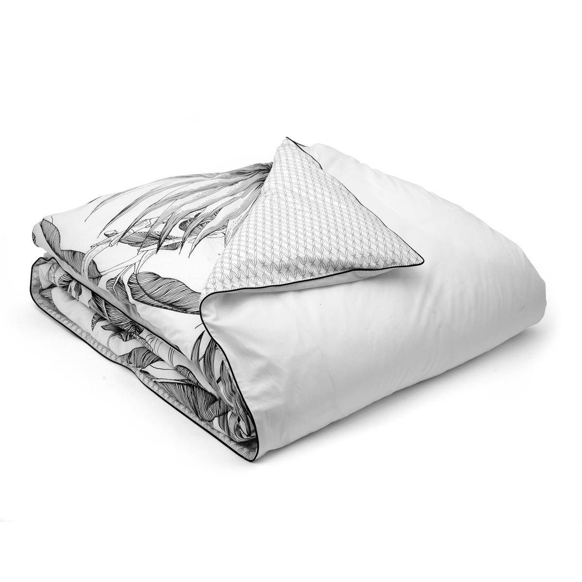 Découvrez toute la collection linge de lit Tropical ! Drap plat, taie d'oreiller, taie de traversin, drap-housse, coussin.
